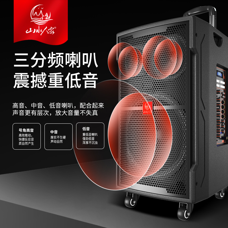 Shanshui people's outdoor square dance audio high-power three-way frequency sound card K song Bluetooth microphone pull rod speaker