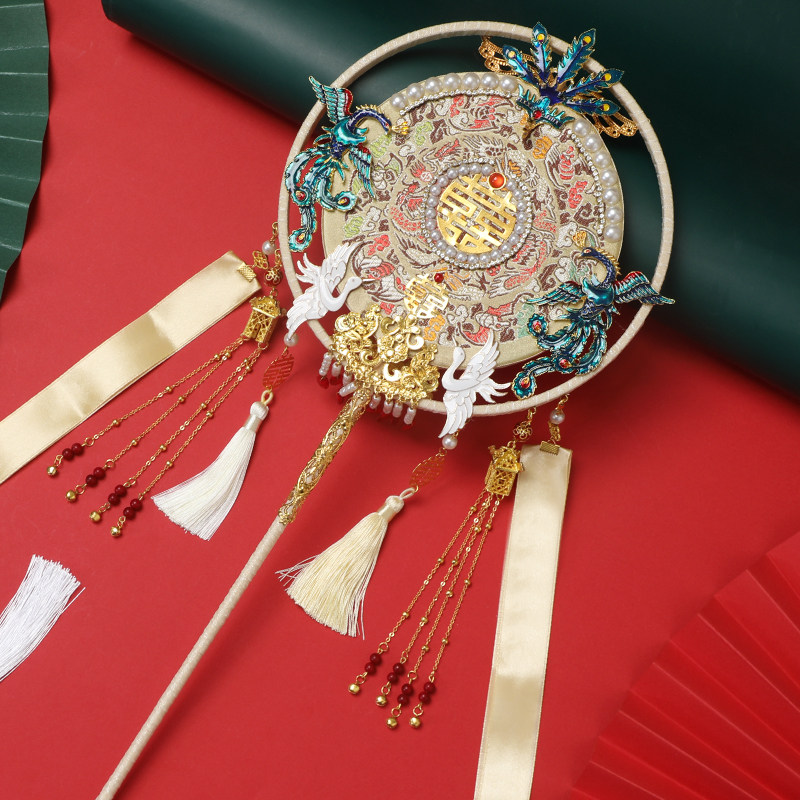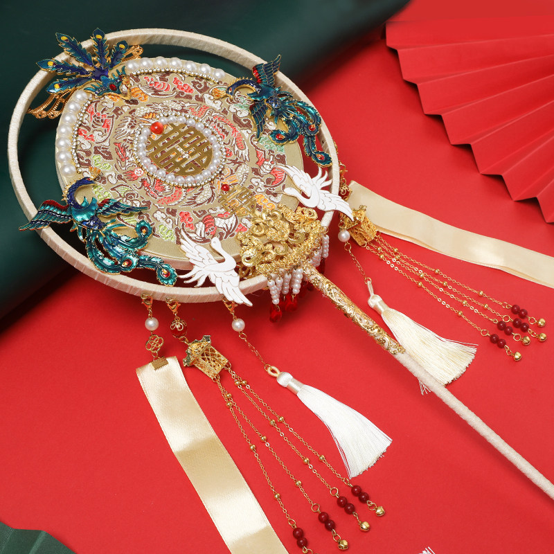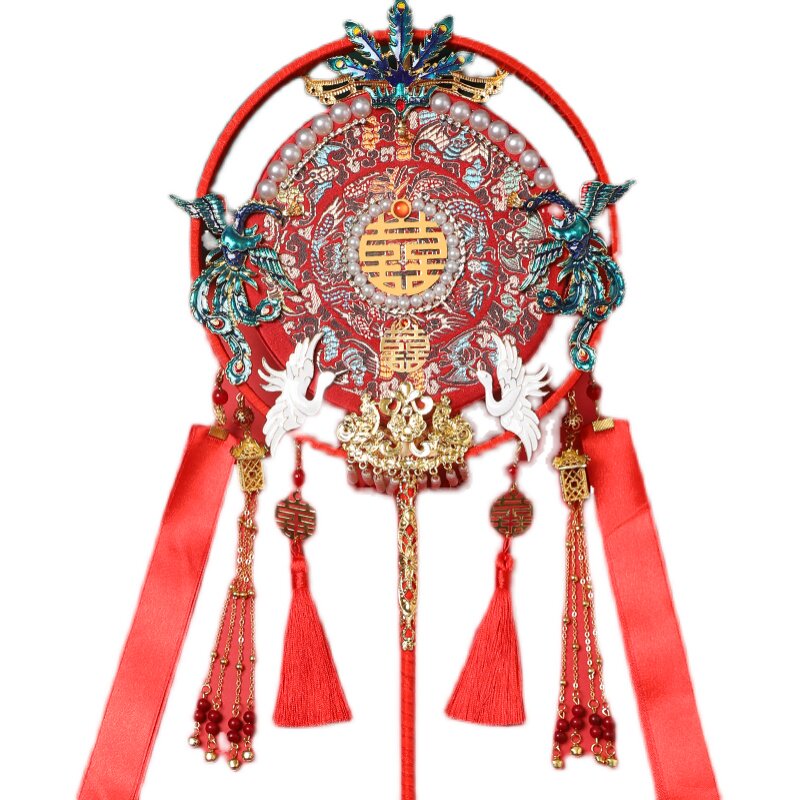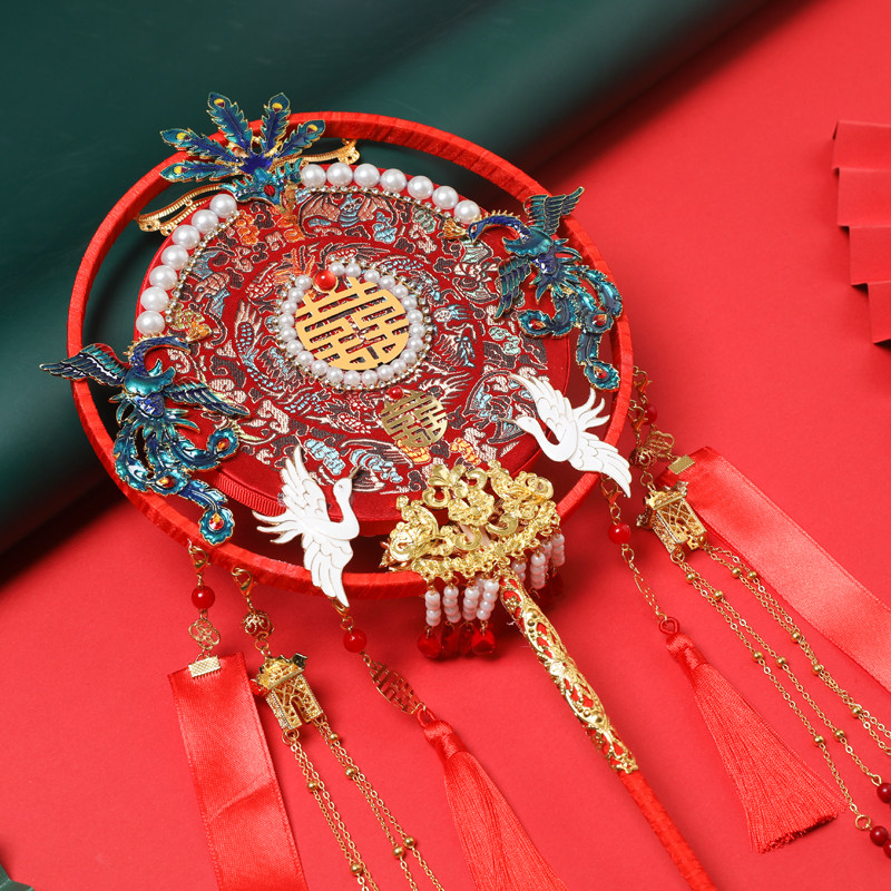 Chinese style group fan wedding bride red high-end out of marriage yet fans of classical palace show Wo Hei fan finished material bag