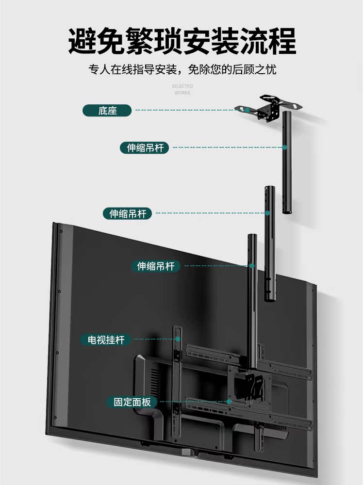 Universal TV ceiling bracket ceiling can be lifted and retracted suspension hanger Xiaomi Skyworth Konka Changhong Hisense 55 inches