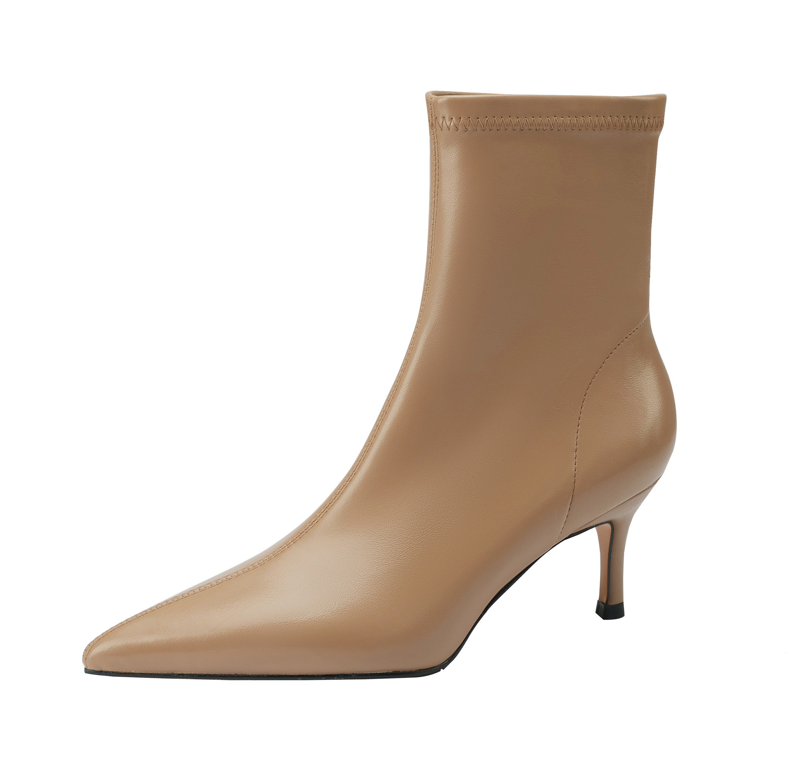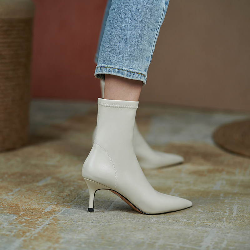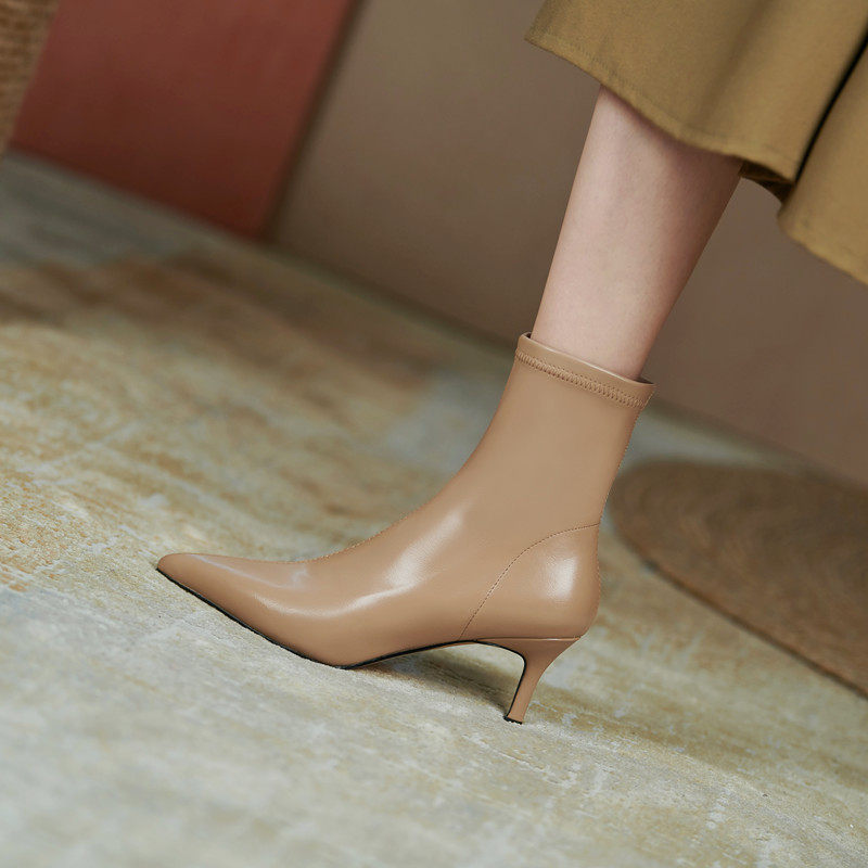 Cat heel short boot female pointed fine heel white nude boots with its color plus suede ankle boots French style slim boot winter high heel shoes