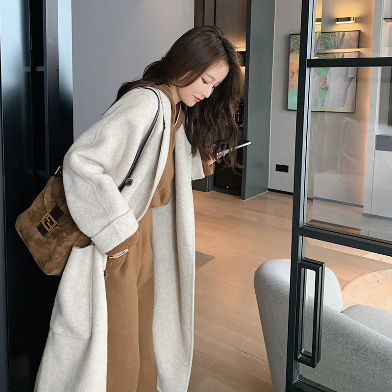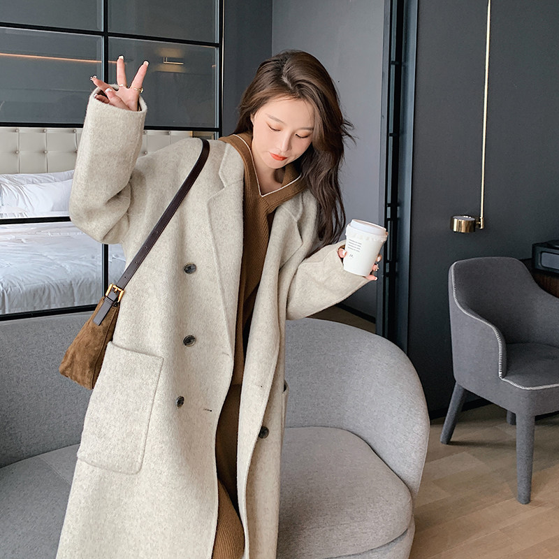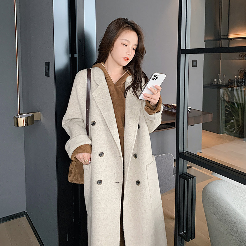 2021 new autumn and winter double-sided cashmere coat women's long high-end woolen coat wool double-sided