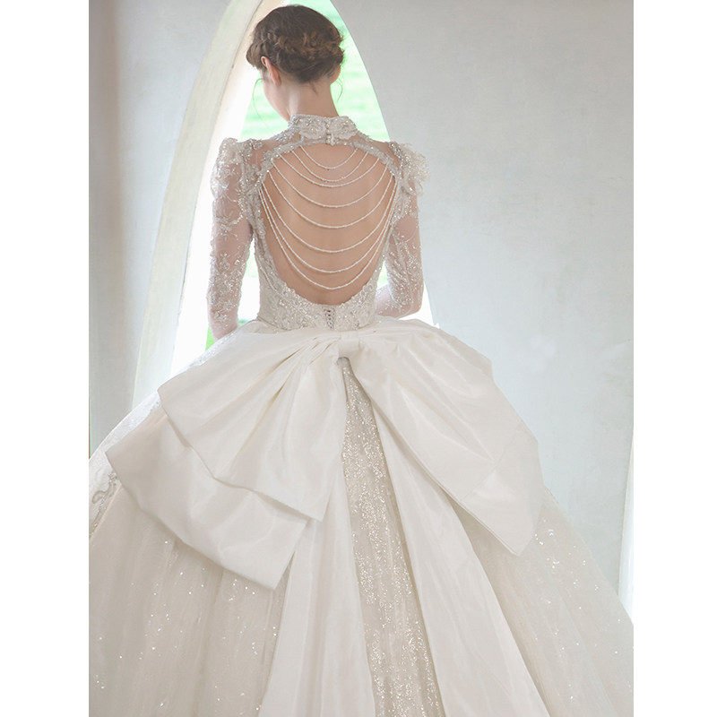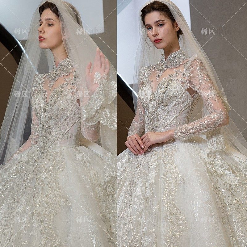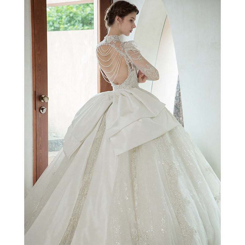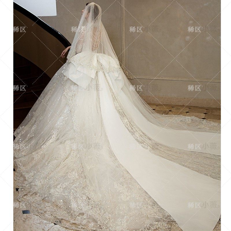 Long sleeve main wedding dress bride 2021 new big tailing female French retro heavy industry winter shoulder Court