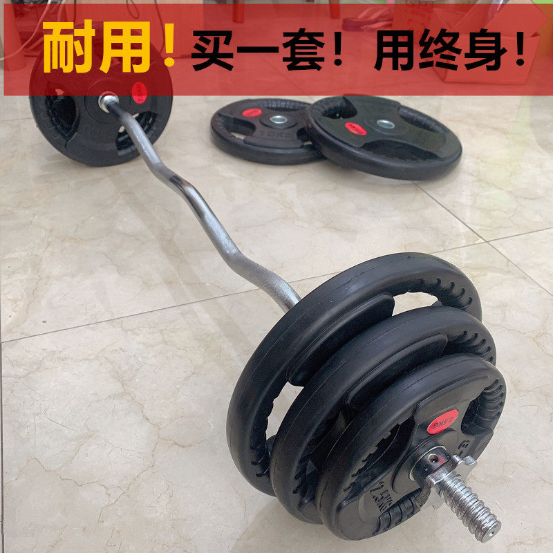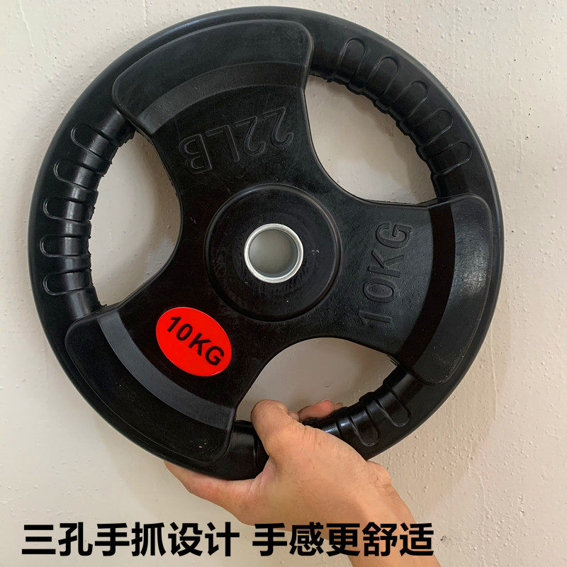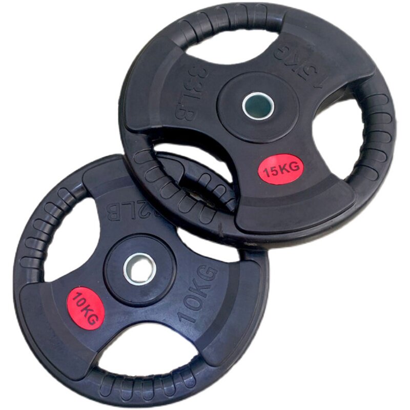 The bag is covered with a rubber barbell