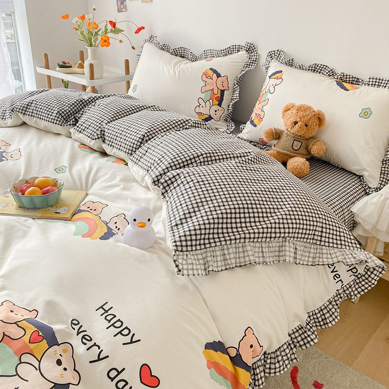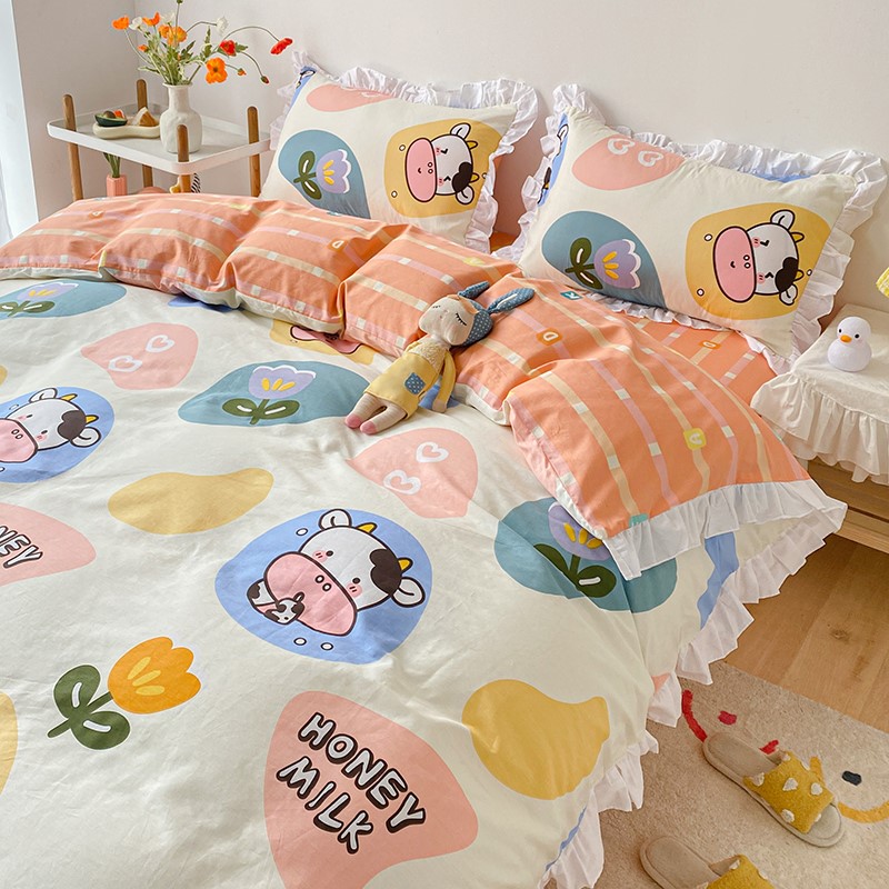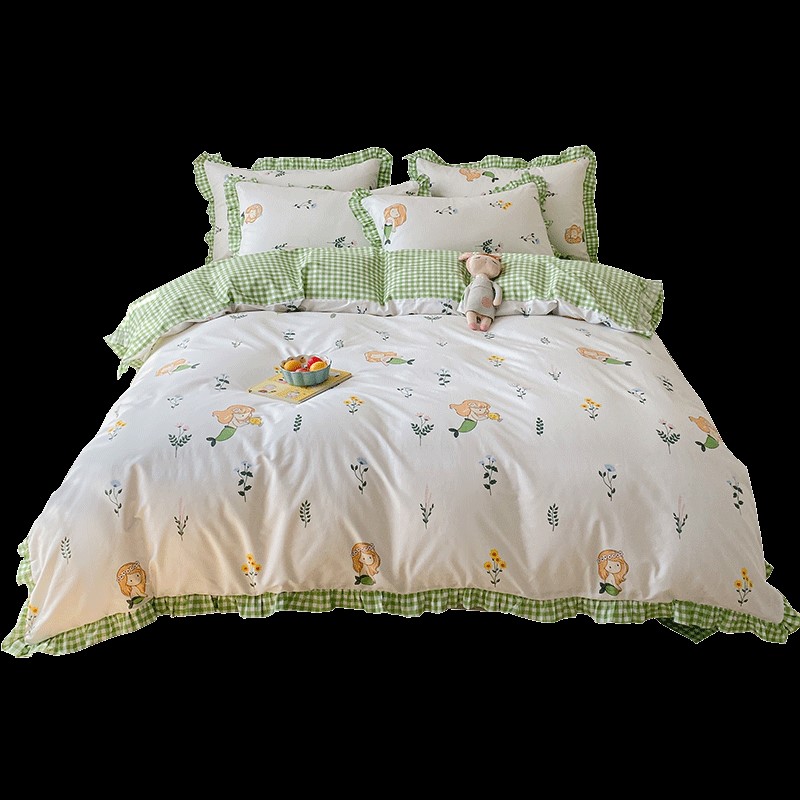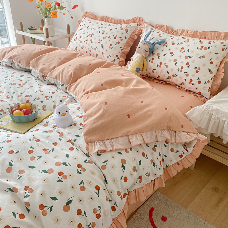 Princess wind ins cotton wash cotton bed four-piece set 100 cotton net red Korean girl heart bed sheet quilt cover