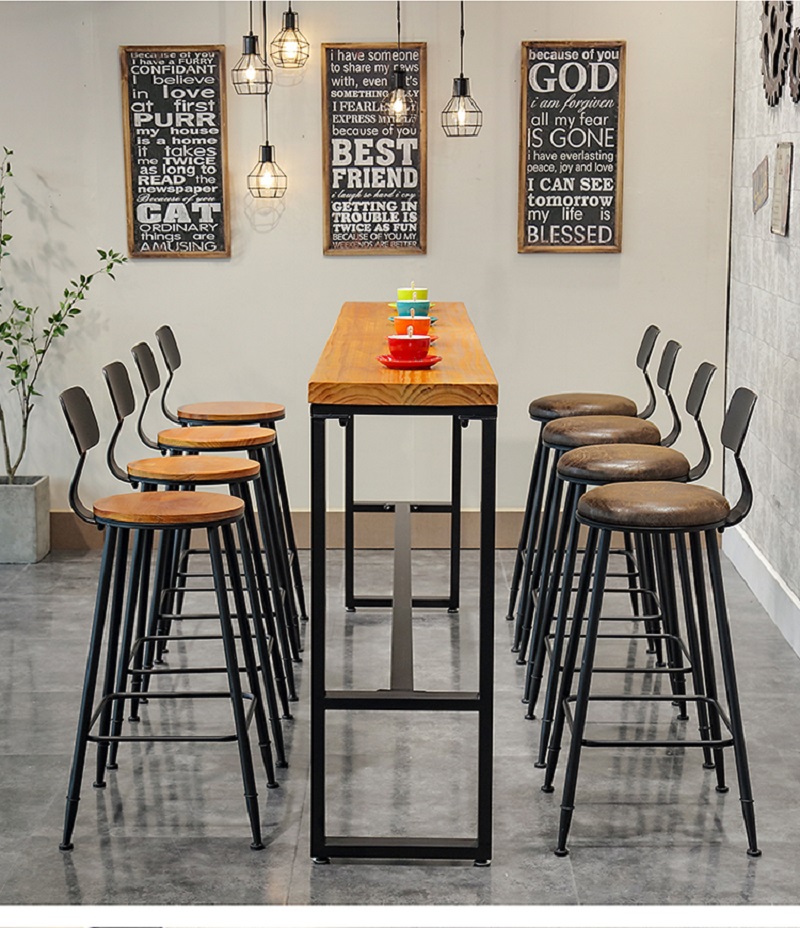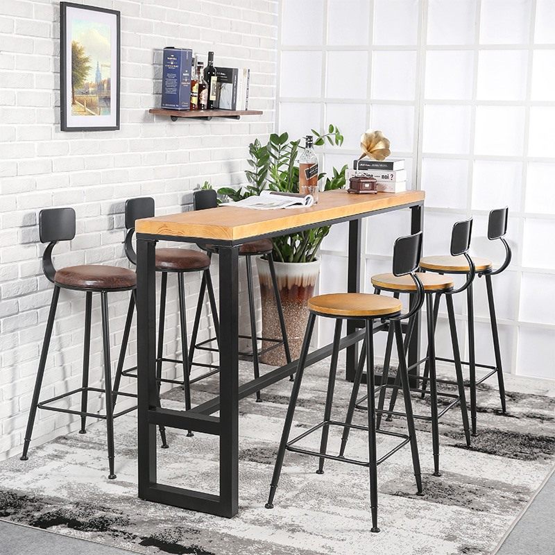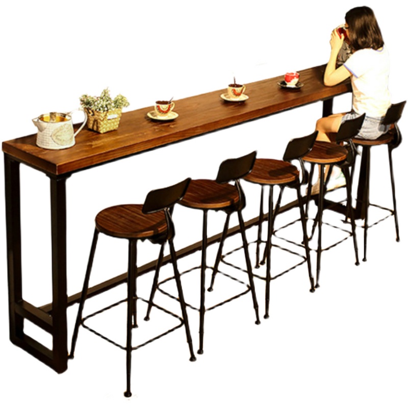 Solid wood American bar table home balcony wall long table bar table wrought iron restaurant high foot milk tea shop combination chair