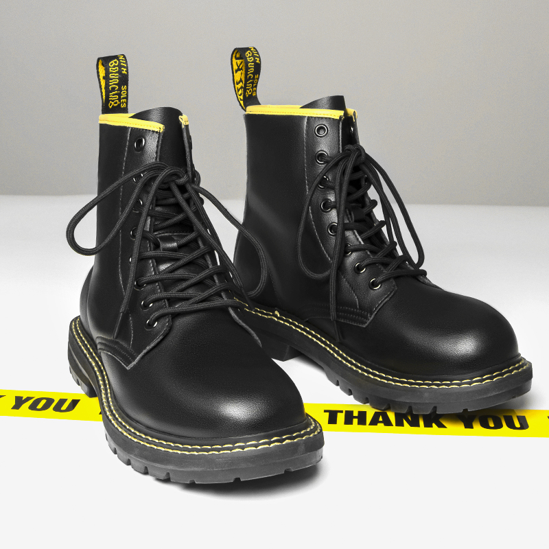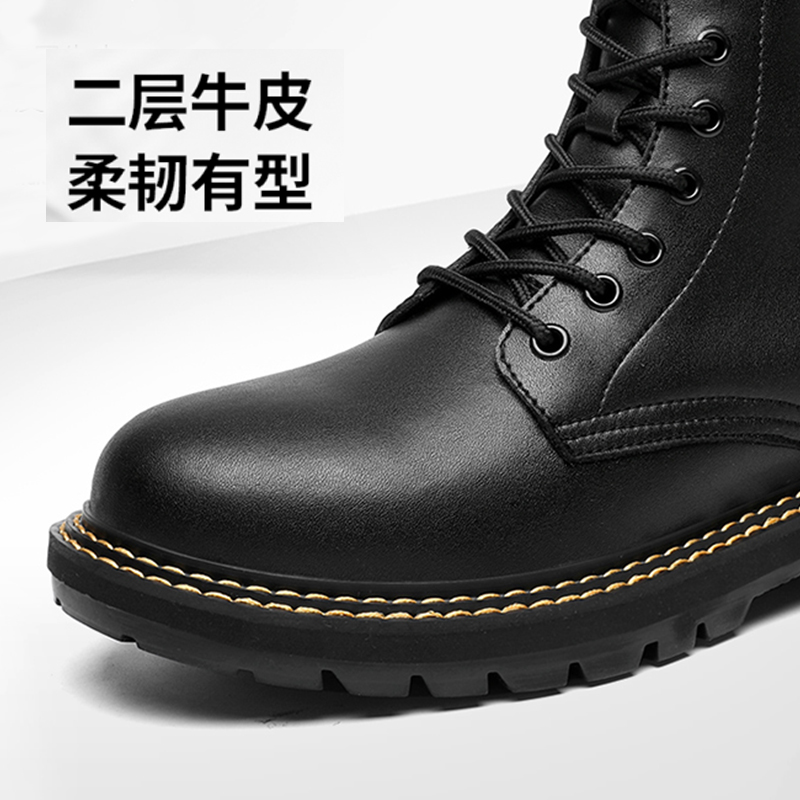 Genuine leather Martin boots Men's eight holes High cylinder Inn Wind Inn Wins shoes lovers Overalls autumn Winter men's shoes Black
