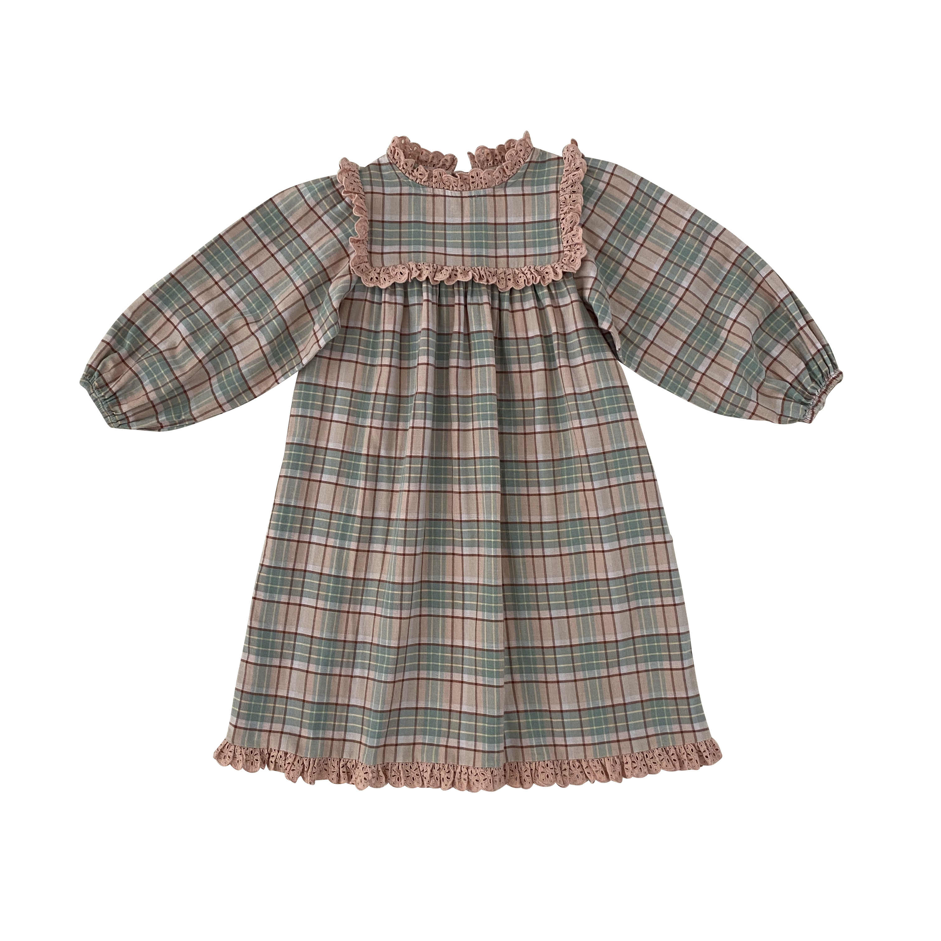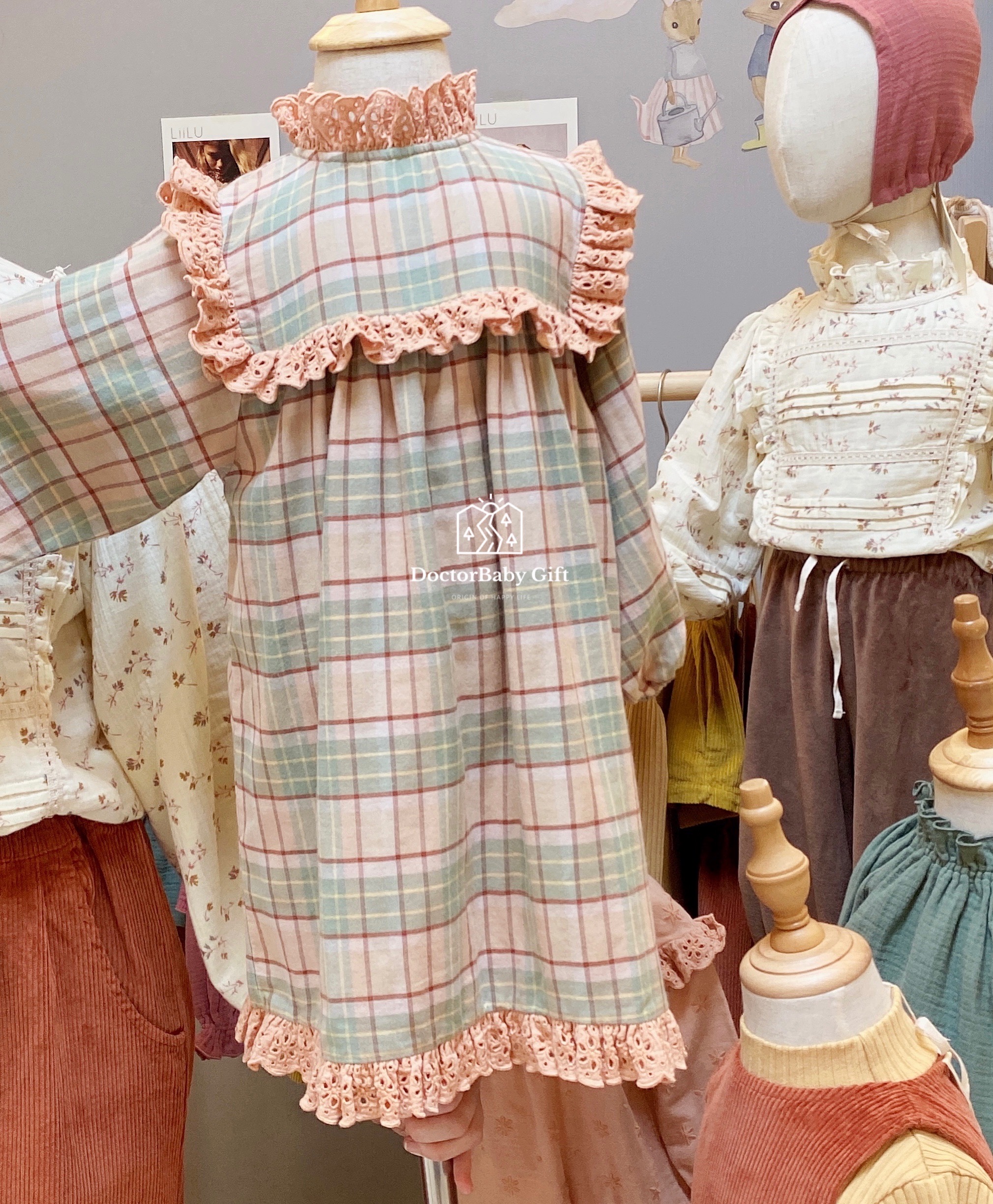 The 6 discount for the German Liù Girls Organic Cotton Senson Crushed Flower Plaid Long Sleeve Foreign Dress 11