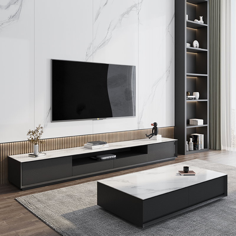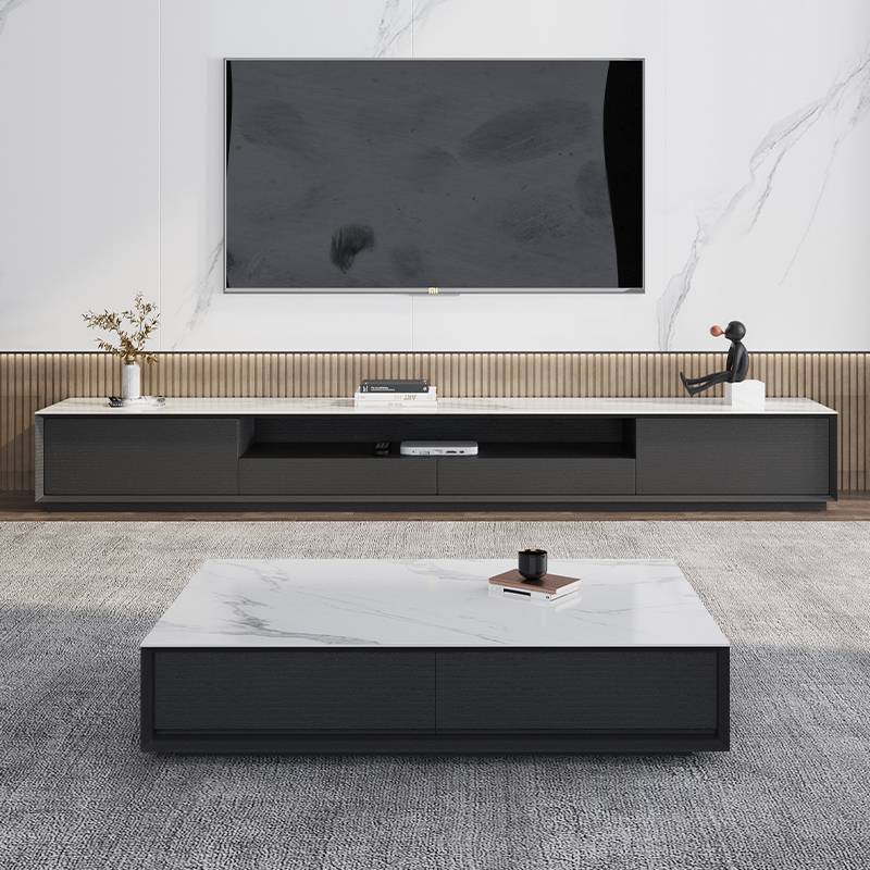 Slate TV cabinet coffee table combination modern minimalist small apartment Nordic black and white Italian minimalist marble floor cabinet