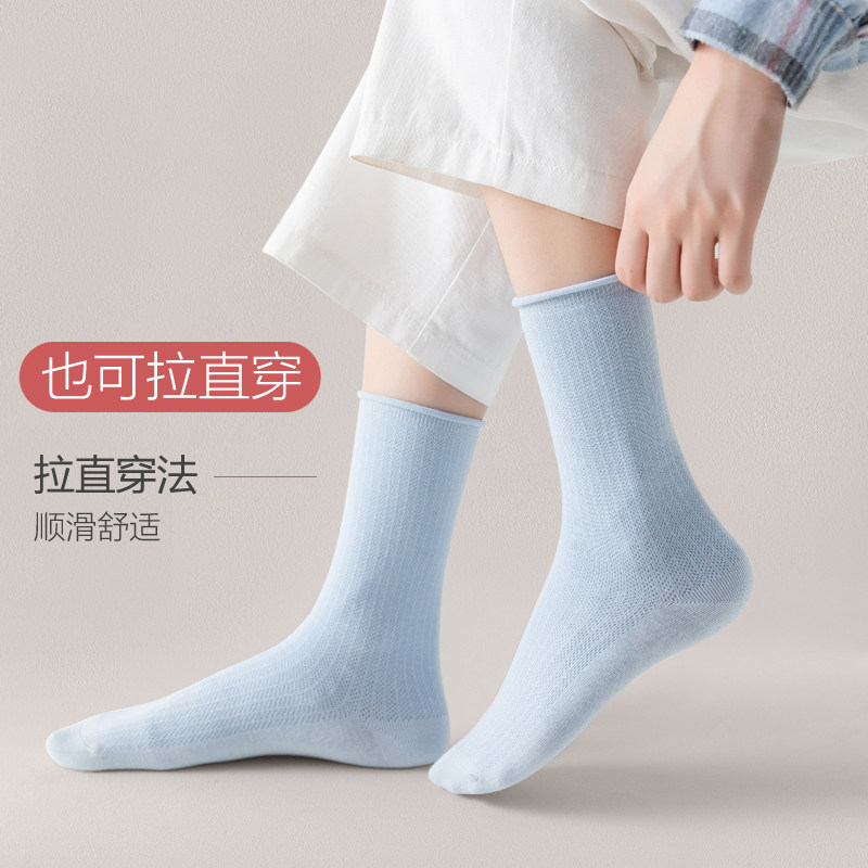 Spring and summer thin cotton socks anti-odor breathable sweat-absorbing mesh eye tube socks autumn Japanese ladies sweet pile socks