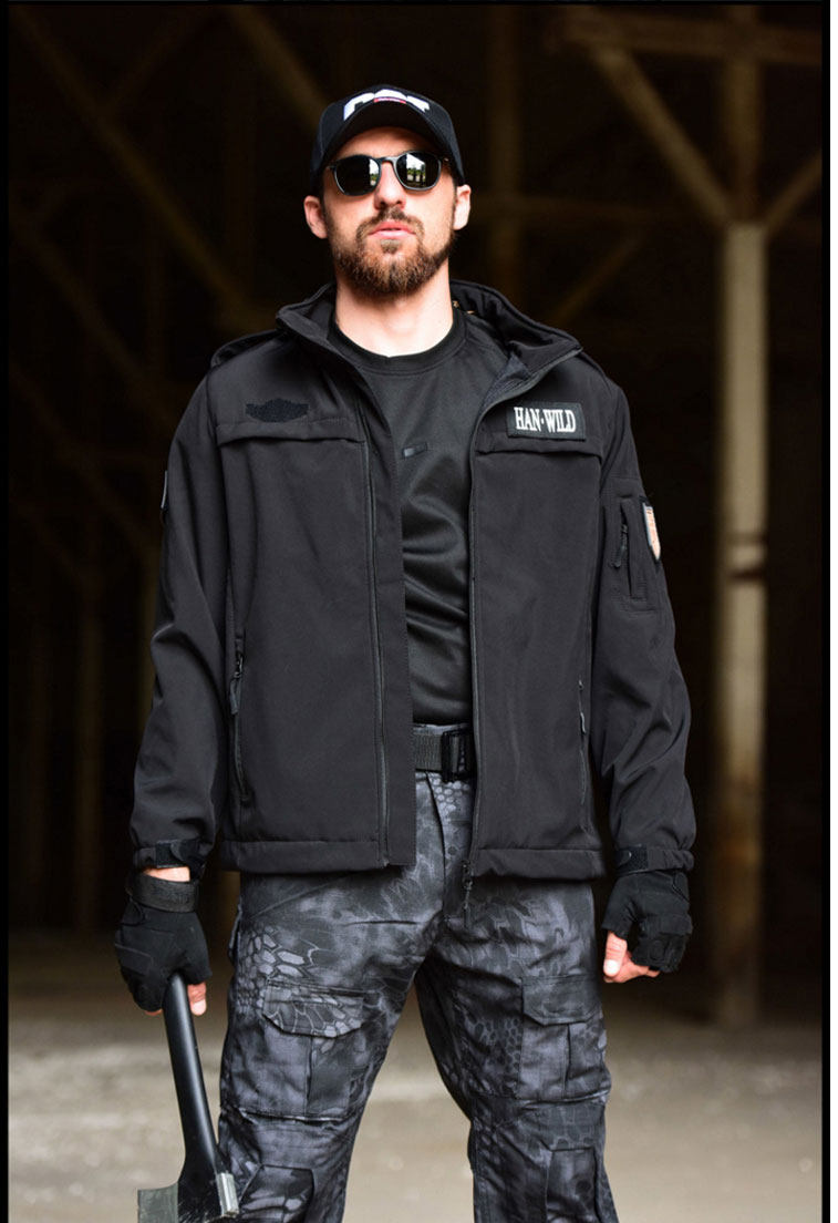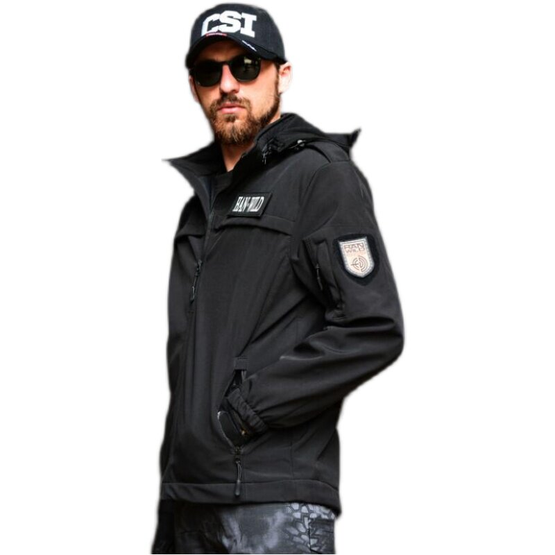 Winter training uniforms perform fleece storm jacket black plus velvet thickened combat training suit windproof waterproof security work clothes
