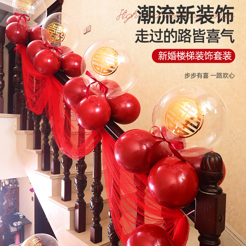 Staircase Balloon Decoration Set (Red Sequins Red Gold) Staircase Balloon Decoration Set (Gold Hi Red Gold) Staircase Balloon Decoration Set (Hi Word Bobo Ball) Staircase Balloon Decoration Set (Red Hi Sakura)