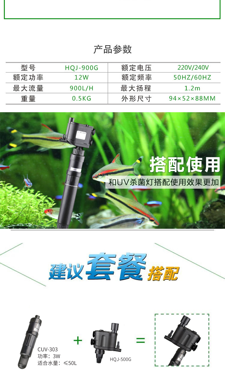Sensen HQJ-700G 900G FISH TANK Aquarium With Filter Water Pumping Cycle Three-in-one Water Pump