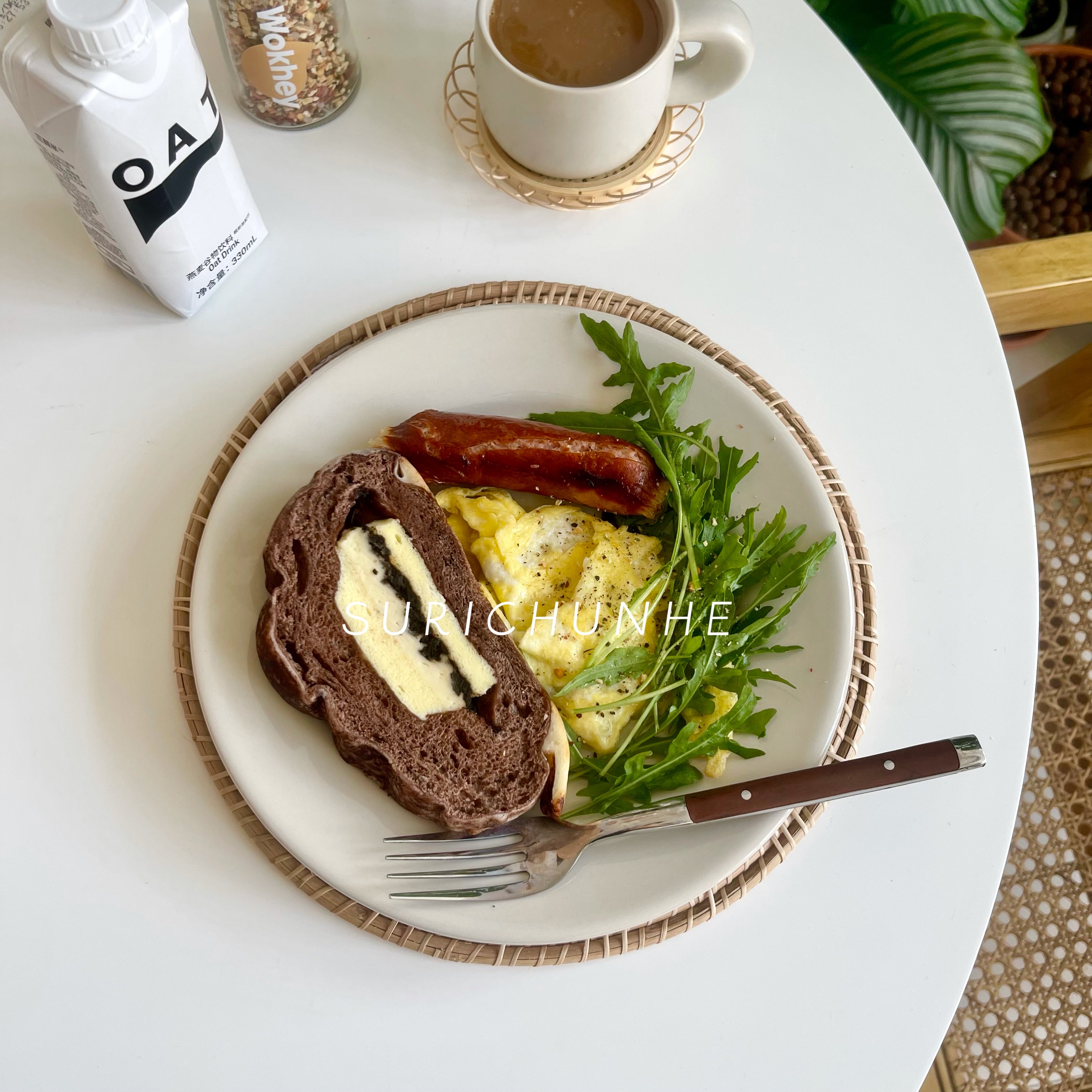 Vegetarian day spring and retro rice white brief Joins wind ceramic disc dessert breakfast with wide edge round steak tray