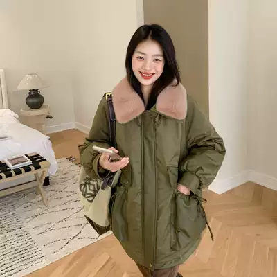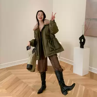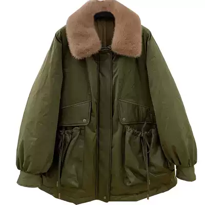 Parker suit 2021 new women's coat mink real fur collar detachable young fur coat long version thin