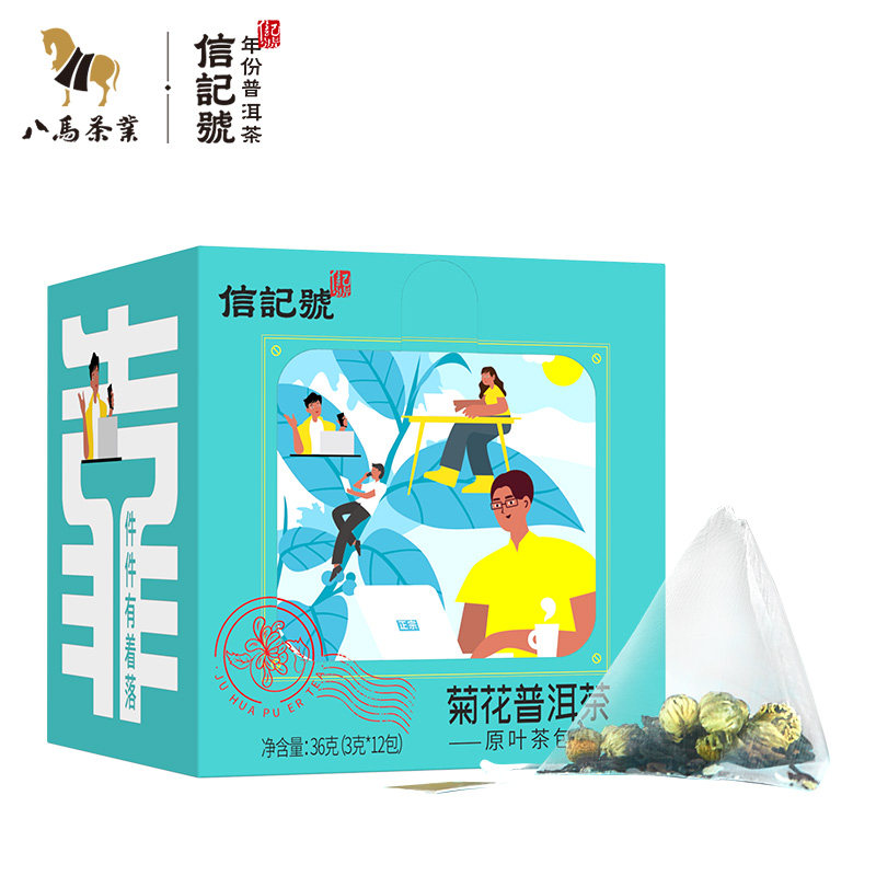 8 Horses Tea New Products Letter Mark Pu'er cooked tea Chrysanthemum Pu'er Triangle Bags Tea for tea 36g