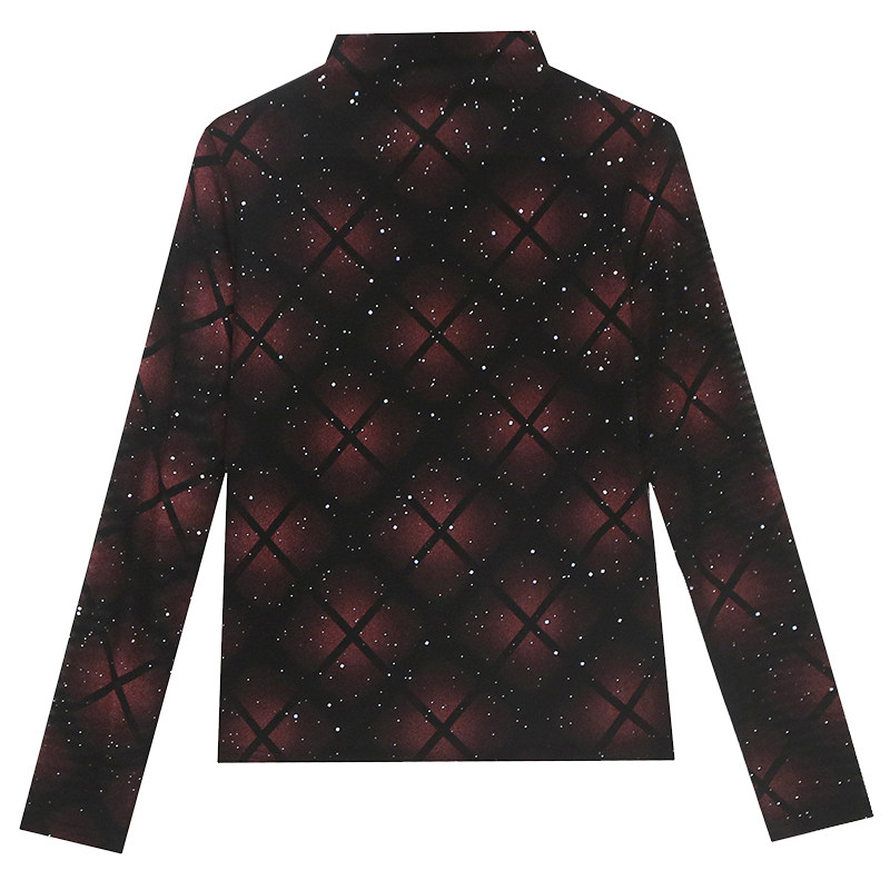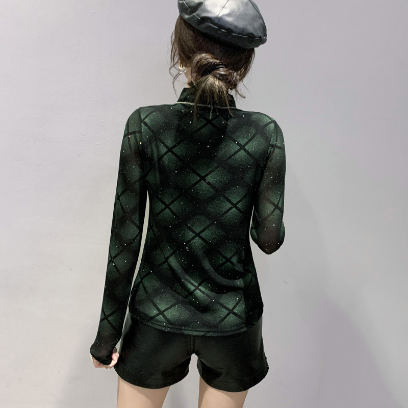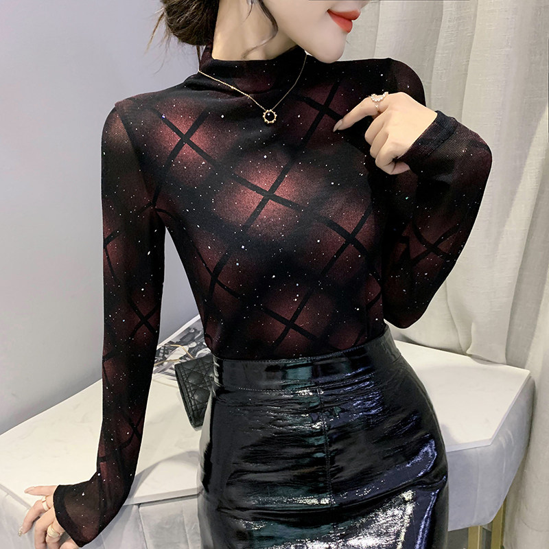 European Standing Autumn Winter New Half High Collars Undershirt Woman Long Sleeve Fashion Bright Silk Screen T-shirt Nets for a foreign blouse
