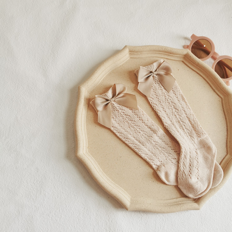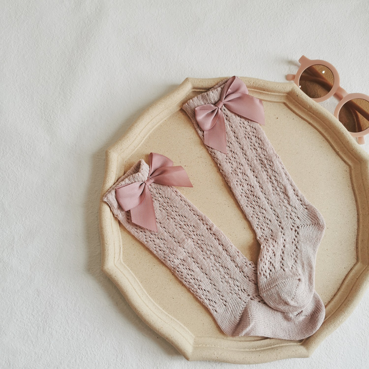 Spanish female baby children butterfly knot hollowed-out retro midbarrel socks pure cotton lace Inlenbutes baby socks