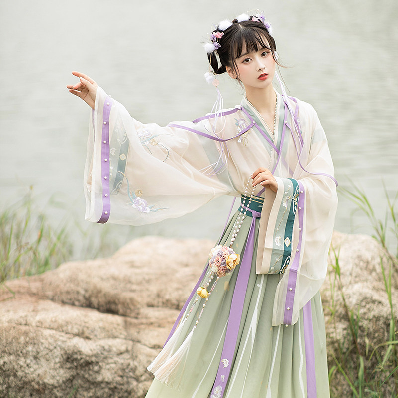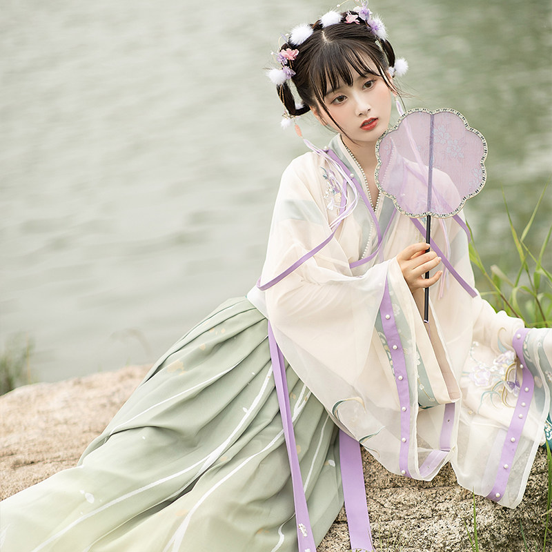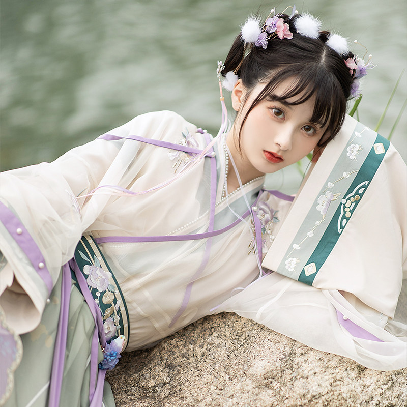 Pool Charlotheon: Flow light flying plums with double deceit collar upper pleats Pleats Original Improved Hanfu Women Spring Autumn