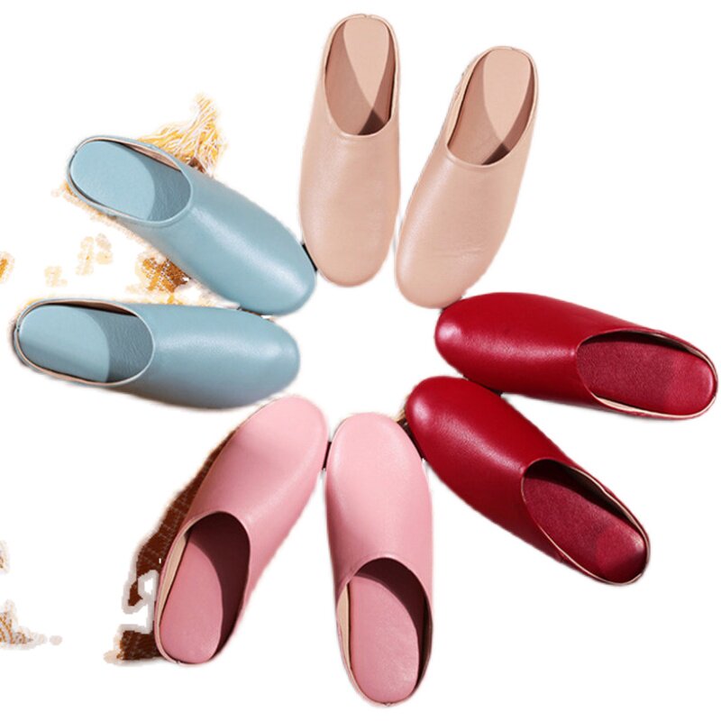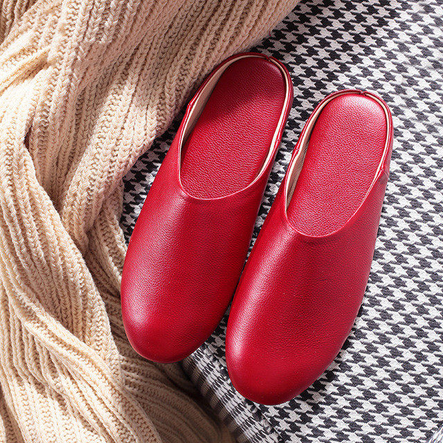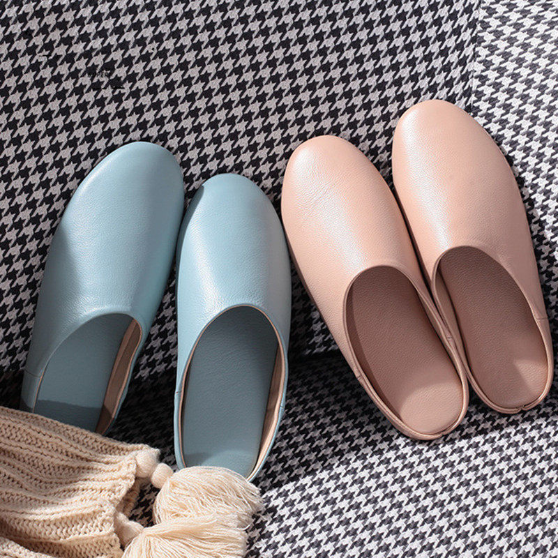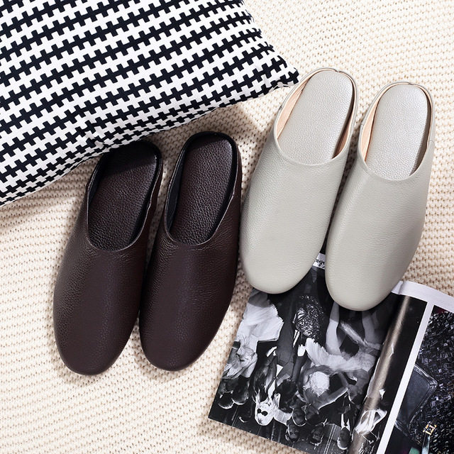 Olyn Fall Buffle Rowskin Slippers Man Couple Woman Floor Shoes Lady Flat Leather Bag Trap