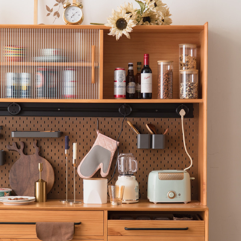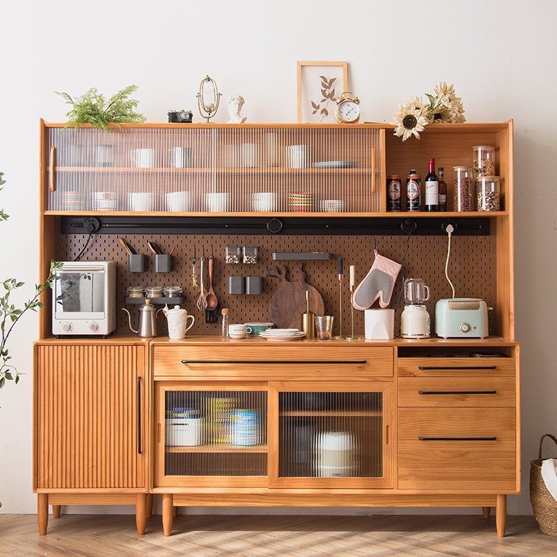 Nordic solid wood sideboard modern minimalist light luxury tea cabinet living room wall storage high cabinet home storage wine cabinet - Taobao