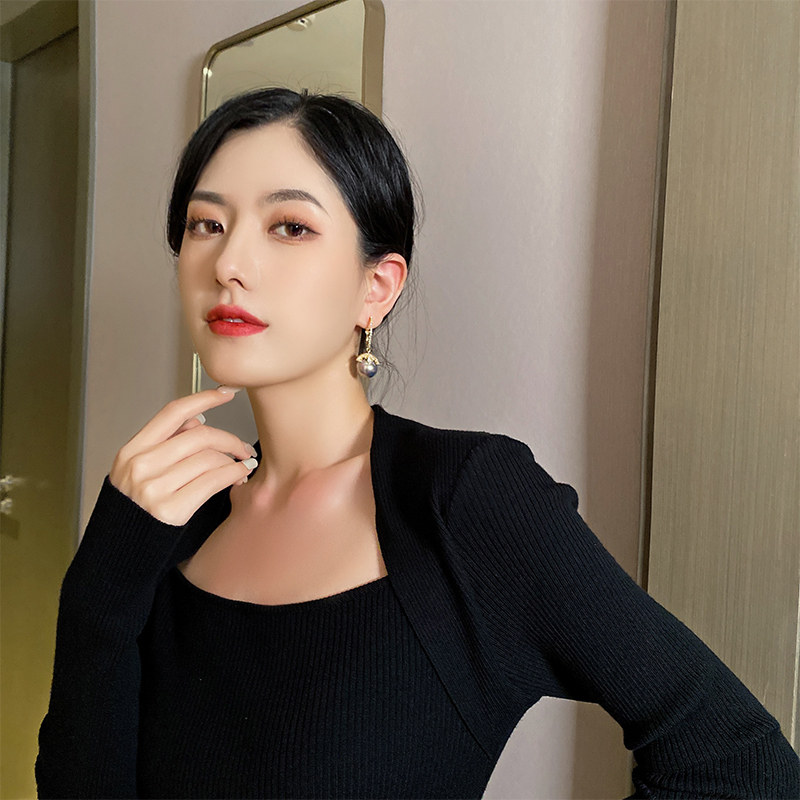 Haoshi pearl earrings (champagne gold) Haoshi pearl earrings (bright gray)