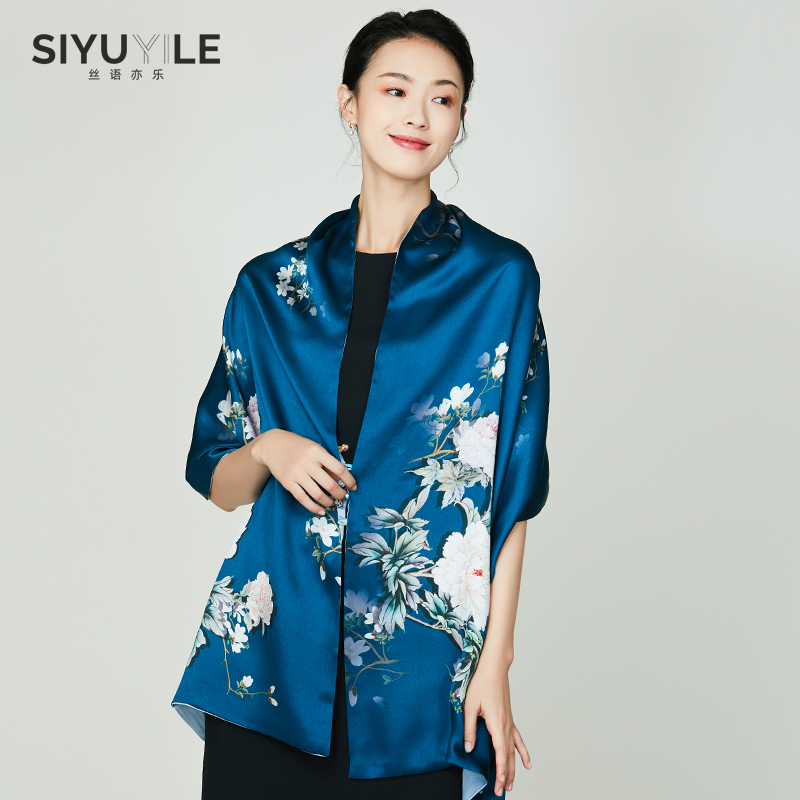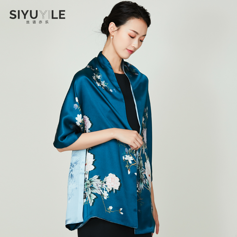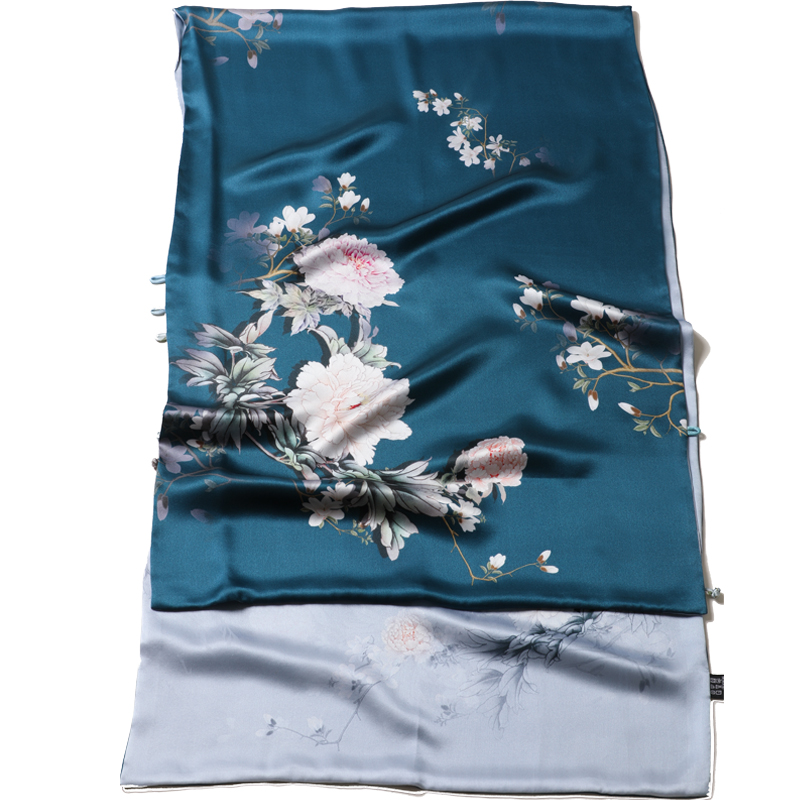 Shawl silk scarf female spring and autumn silk mulberry silk cheongsam dress with skirt spring thin blue scarf