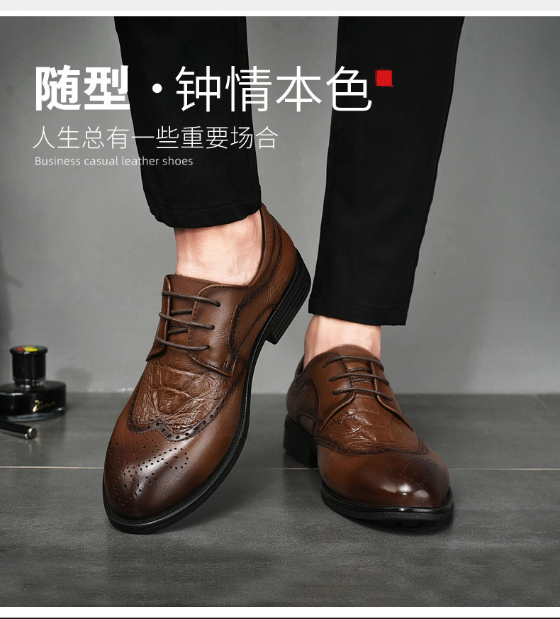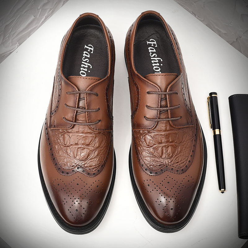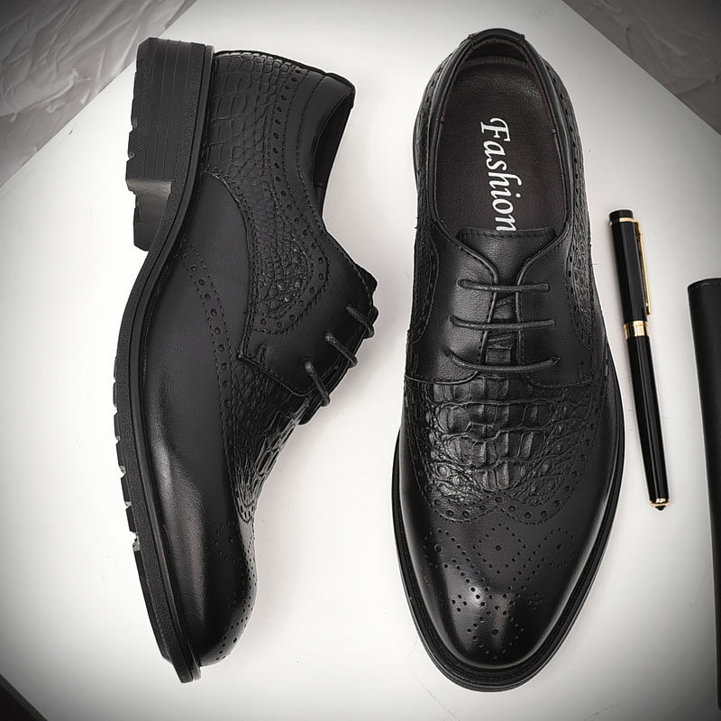 British pointed scalp shoes men leather business dress summer breathable trend of Lock carving men's shoes groom wedding shoes