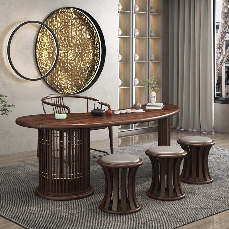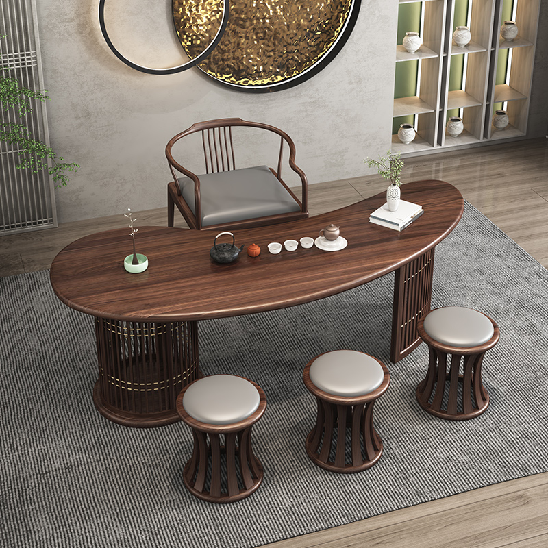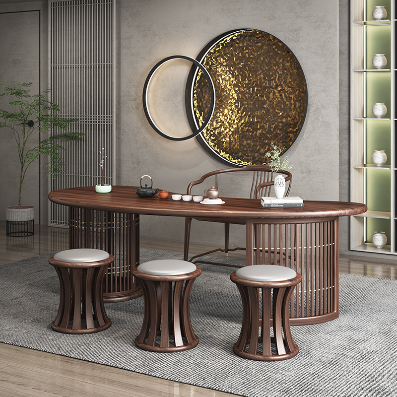 Aesthetic New Chinese Tea Table and Chair Combined Zen Kung Fu Tea Table Tea Room Space Black Walnut Wood Customized