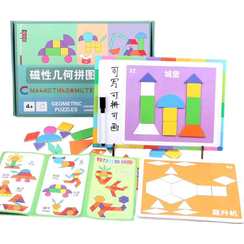 Magnetic tangram 200 pieces can be assembled and drawn Magnetic tangram 100 pieces can be assembled and drawn 170 pieces of geometric shape puzzle