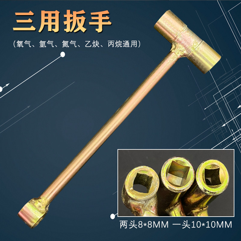 10 10 * 10 acetylene propane wrench (1 support) 8 * 8 oxygen wrench (1 support) Oxygen Acetylene Propane Triple wrench (1 branch) Acetylene Oxygen Dual-use Wrench (1) 1