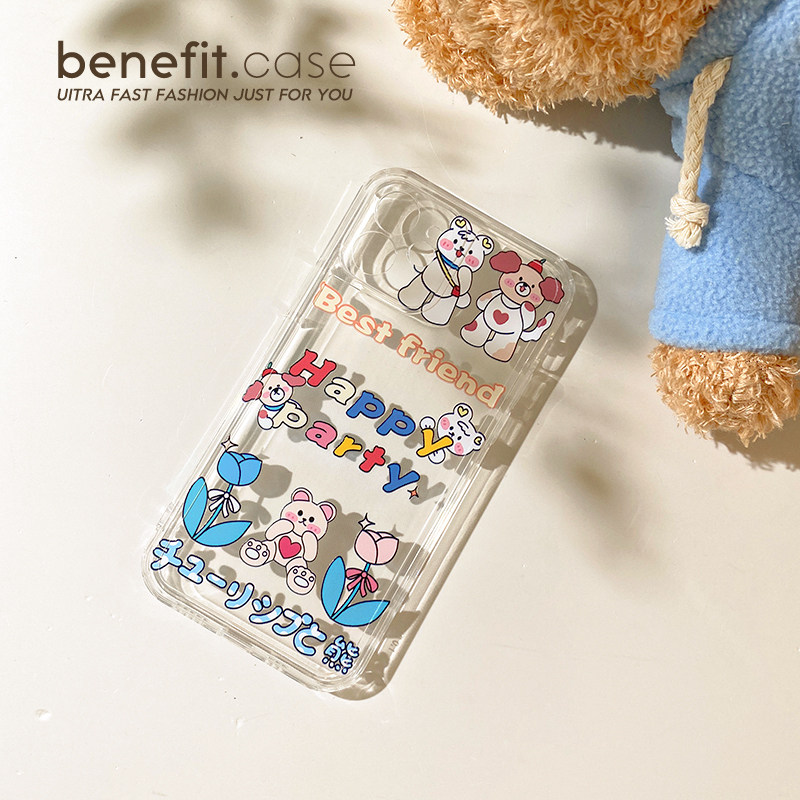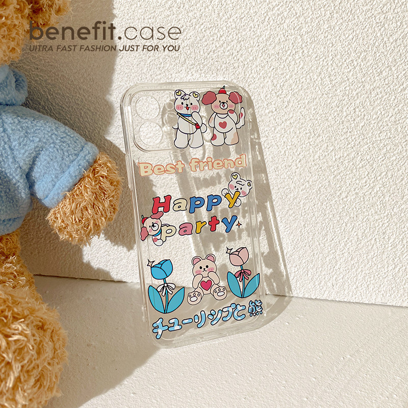 Benefit Cartoon Cute Gathering Bears apply Apple 13promax all-bag phone protection shell new iphone12mini protective sleeve xsmax anti-fall