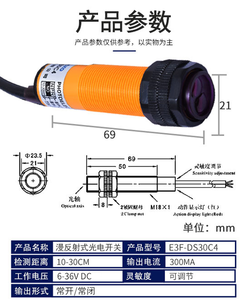 Photoelectric switch infrared induction E3F-DS30C4 proximity diffuse reflective sensor NPN normally open three-wire C1