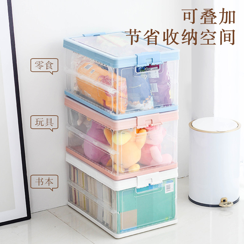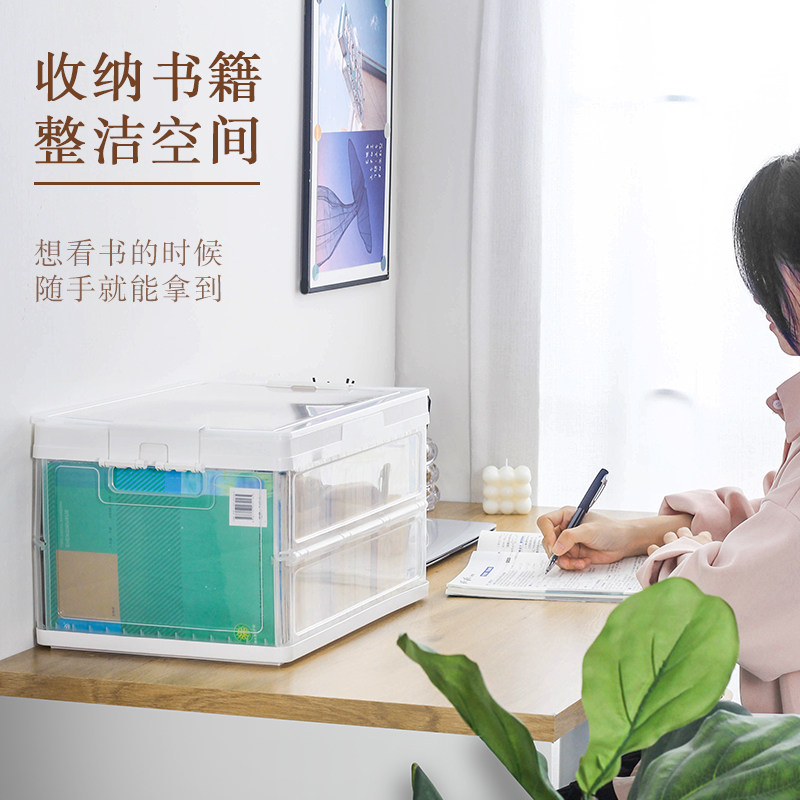 Foldable book storage box home book storage box transparent storage box book box student dormitory finishing box