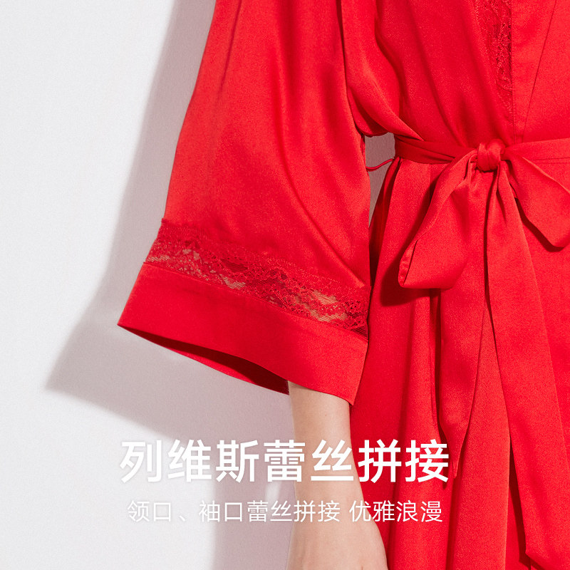 (Song Qian Tongan) Mannie Finn Red 90% SleSleeping Gown Woman Bathrobe Home Pyjamas Home Pyjamas 20320494