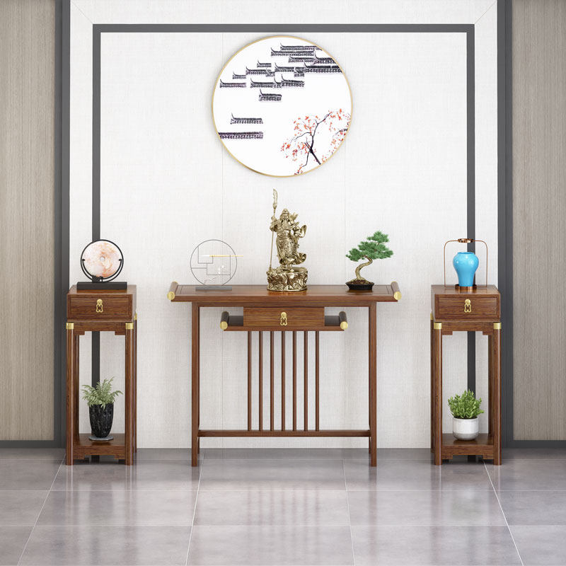 New Chinese light lavish and luxurious table minimalist solid wood strip narrow table Buddha niche for table home art style leaning against wall case