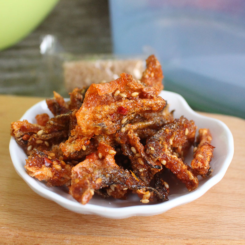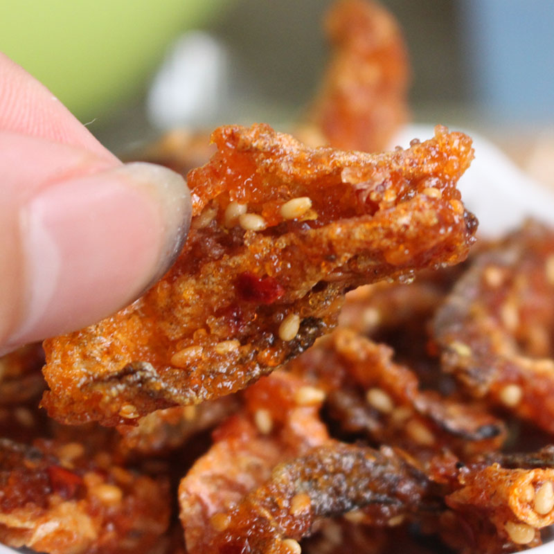 Fish skin, soybean oil, malt syrup, white sugar, pepper, star anise, cumin, edible salt, monosodium glutamate, sesame, flavor and spices