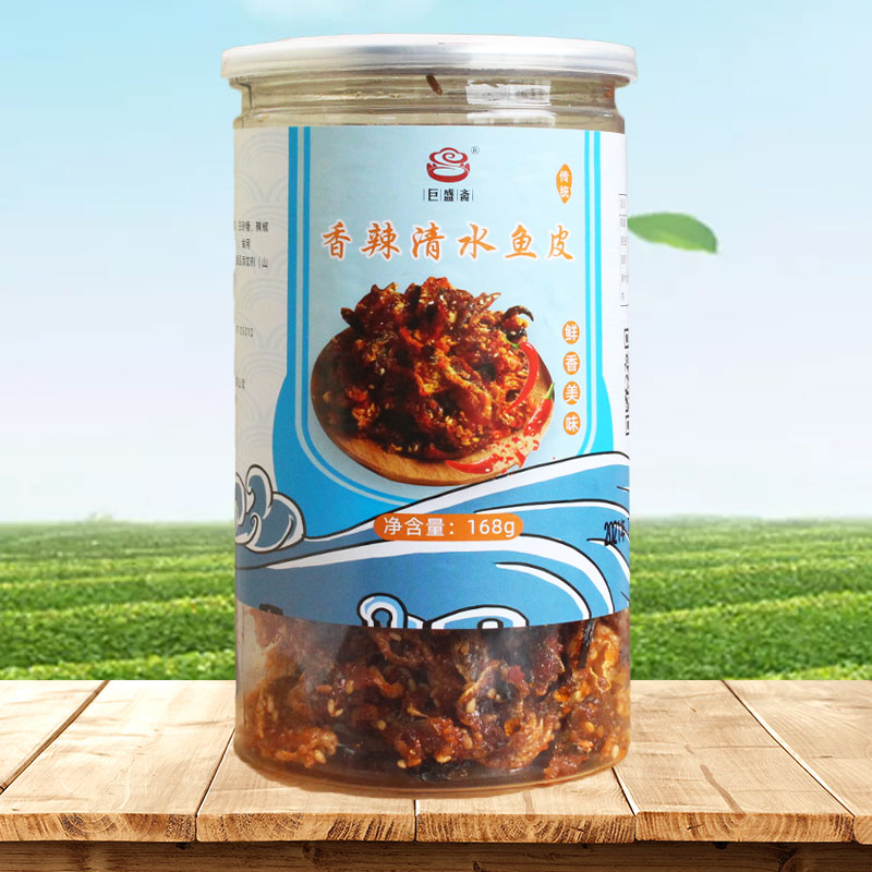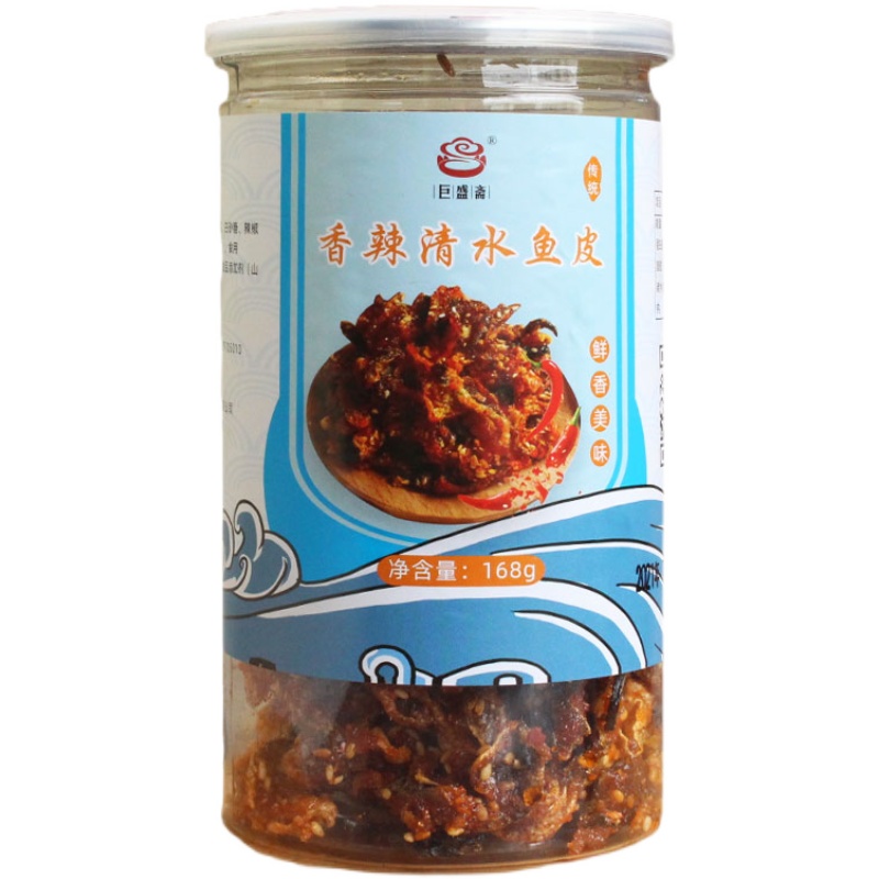 Jushengzhai Spicy Clear Water Fish Skin 168g Snack Instant Cod Skin Canned Fish Dried Fried Fish Skin Snack Delicious
