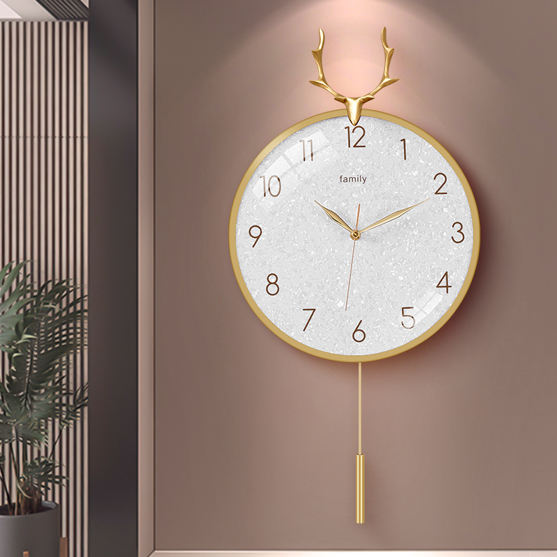 Northern Europe light luxury brass clock wall clock wall room household free punch clock silent watch simple red stone clock