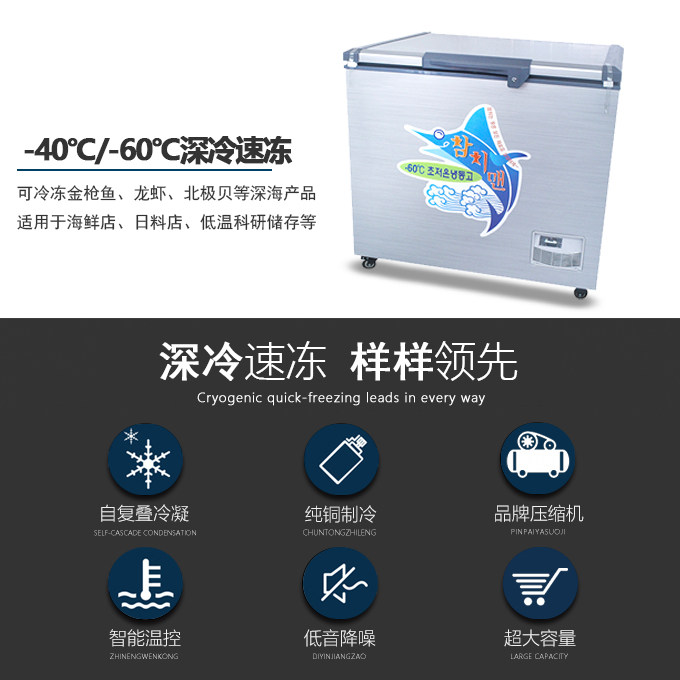 Ultra-low-temperature freezers commercial horizontal freezers minus 40 degrees -60 ° C Electric frozen small cabinets Urgency Freeze Freezer