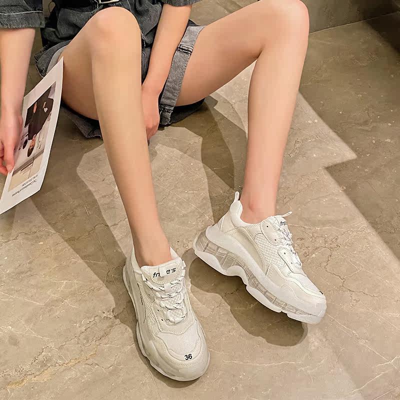 Milk Cool Old Daddy Shoes 2022 Summer New Shoes Women Apricots Color Net Red Air Cushion Shoes Three Generations Crystal Bottom Heightening of Lean Tide