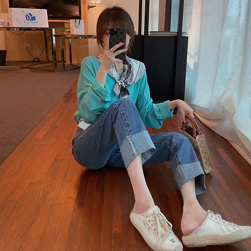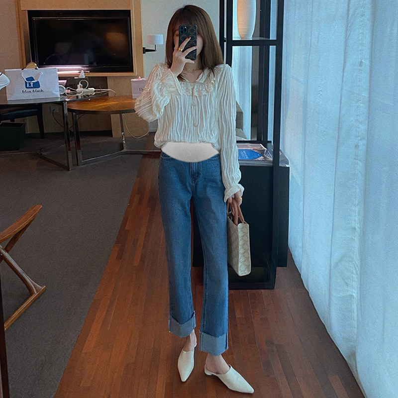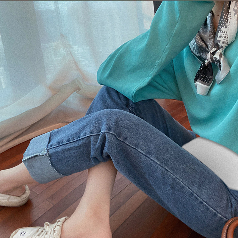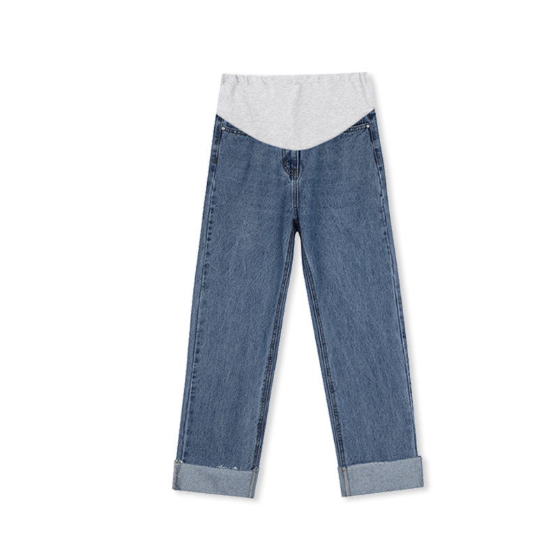 Maternity Pants Spring and Autumn Style Outer Wear Fashion Net Red Pregnant Women Denim Straight Pants Thin and Covering the Meat Nine Points Supporting Belly Pants Autumn