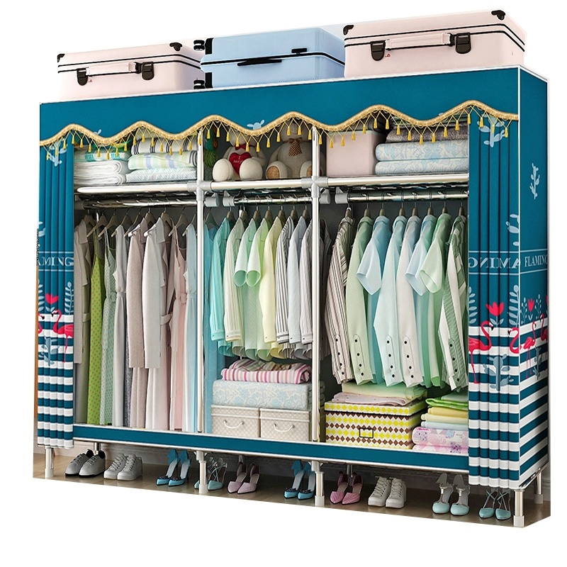 Simple stainless steel wardrobe home bedroom strong and durable bold thickened hanging wardrobe cloth wardrobe large capacity girl - Taobao