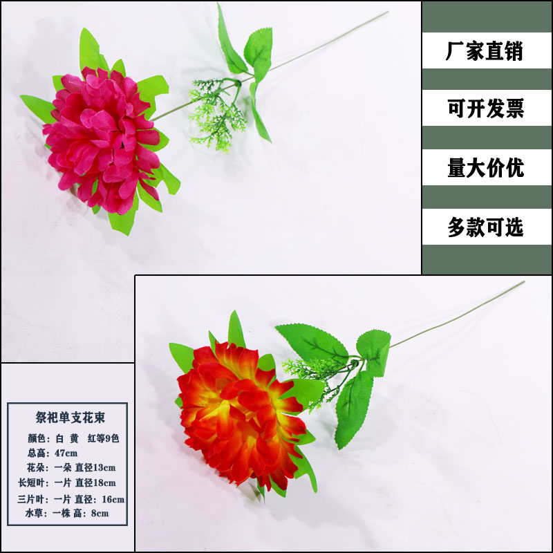 Single branch Qingming chrysanthemum flower tomb sweeping sacrifice fake flower simulation flower cemetery cemetery placed silk flower electronic wreath flower