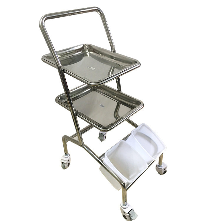 Medical thickened stainless steel three-layer square frame trolley nurse dressing change surgical instrument trolley