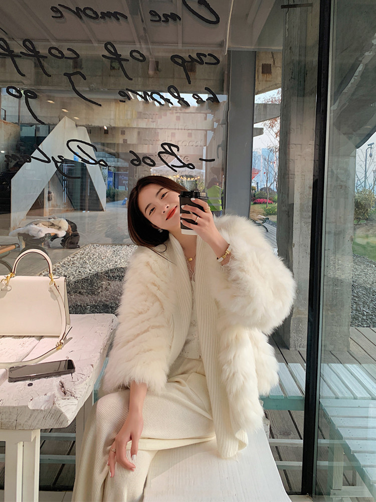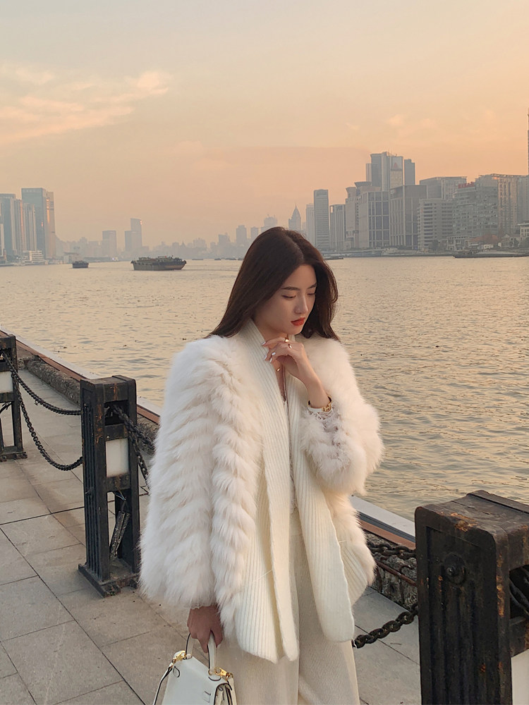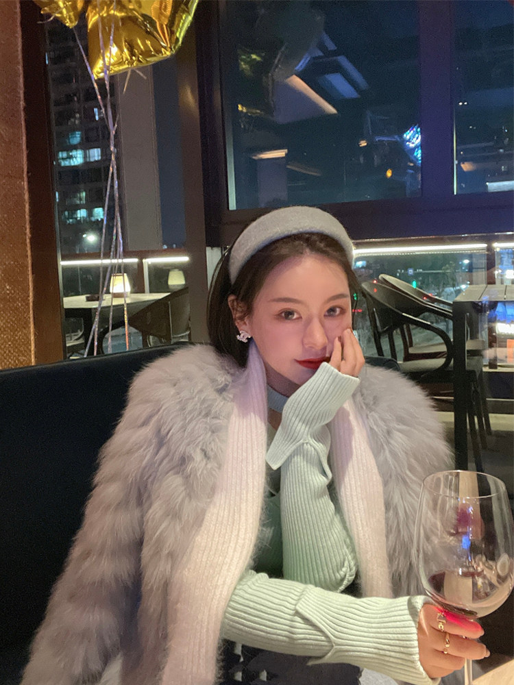 2021 Autumn Winter New Car Strips Fur Fur Coats Young Imitation Fox Fur Weave lean and slimmer and less woolen sweater