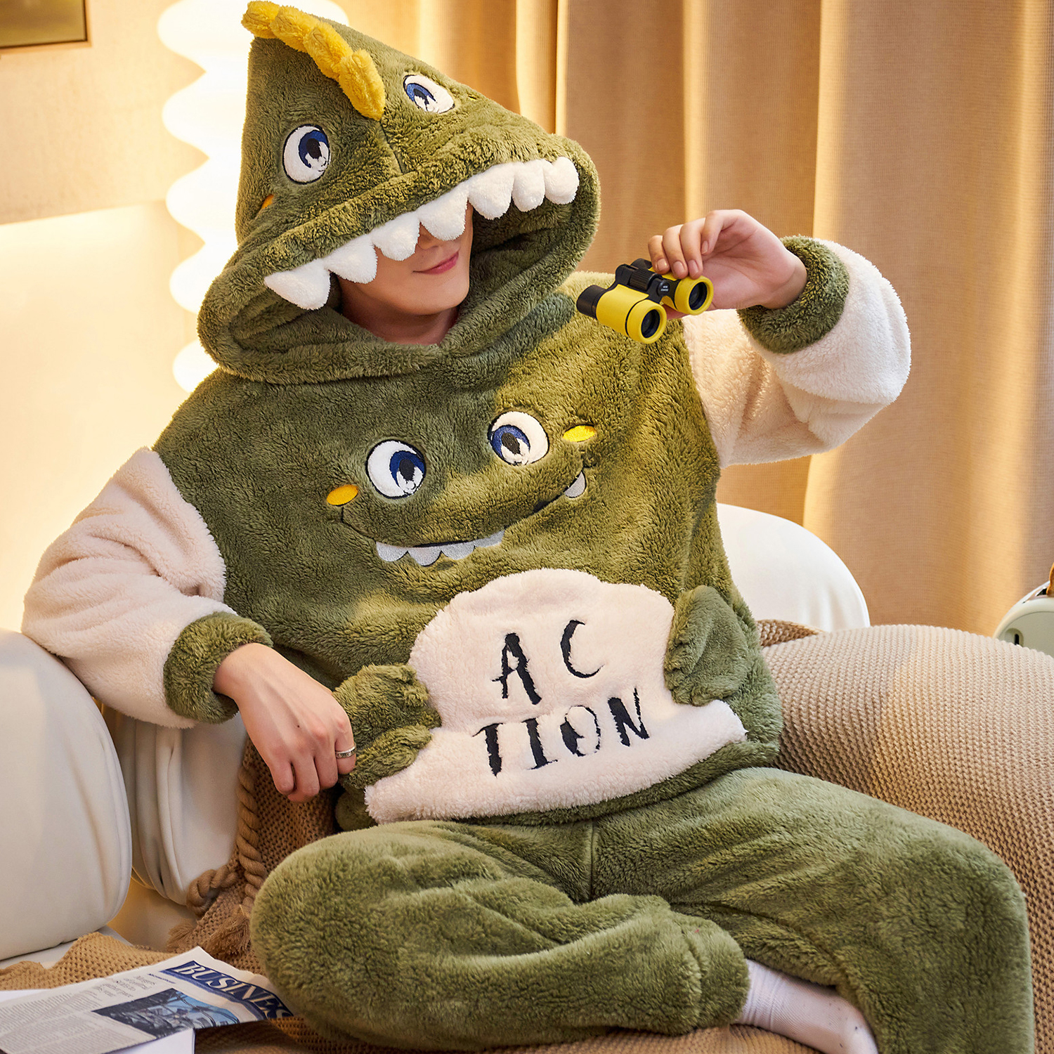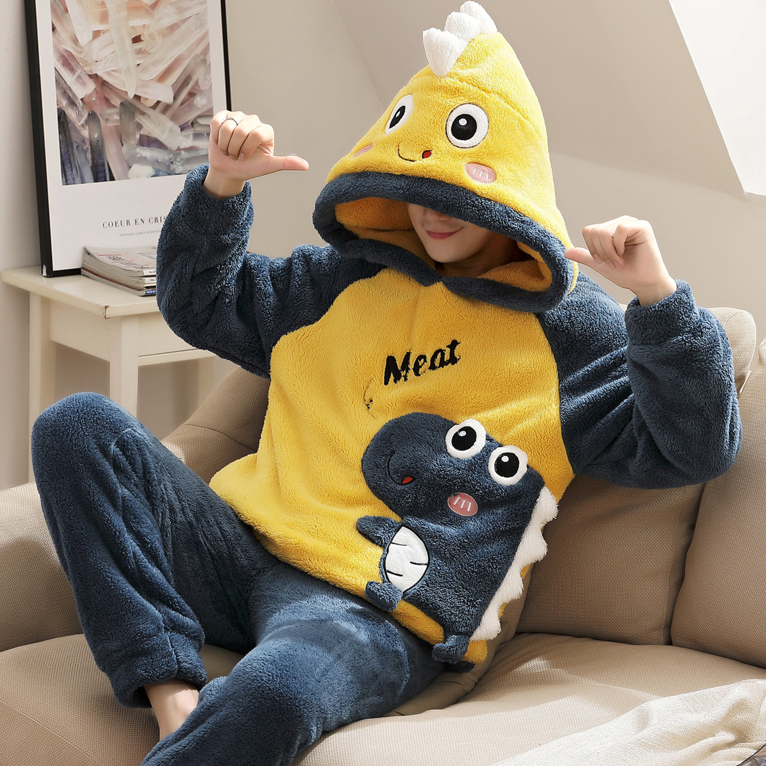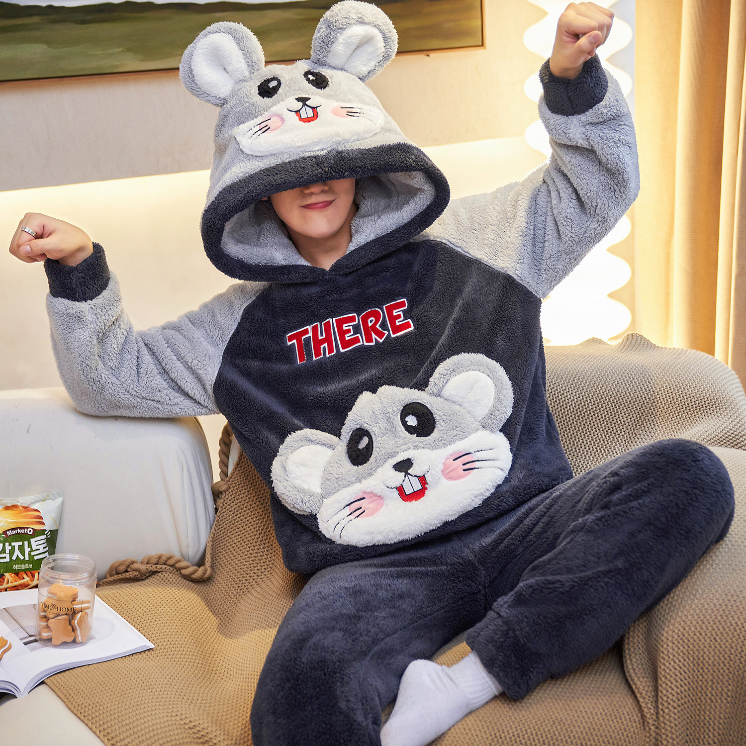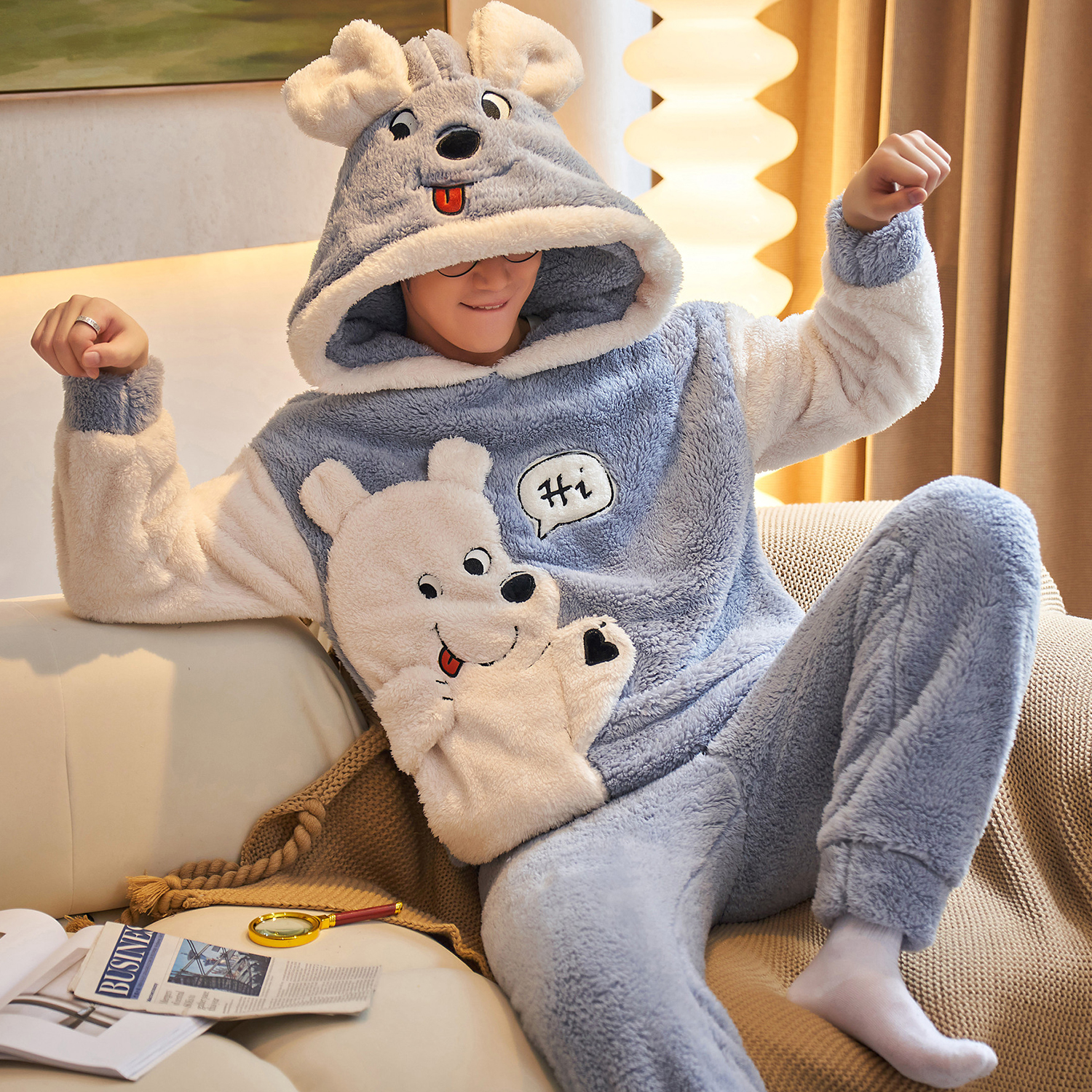 Autumn and winter winter coral fleece men's pajamas thickened and velvet flannel cartoon plus fertilizer plus size winter suit