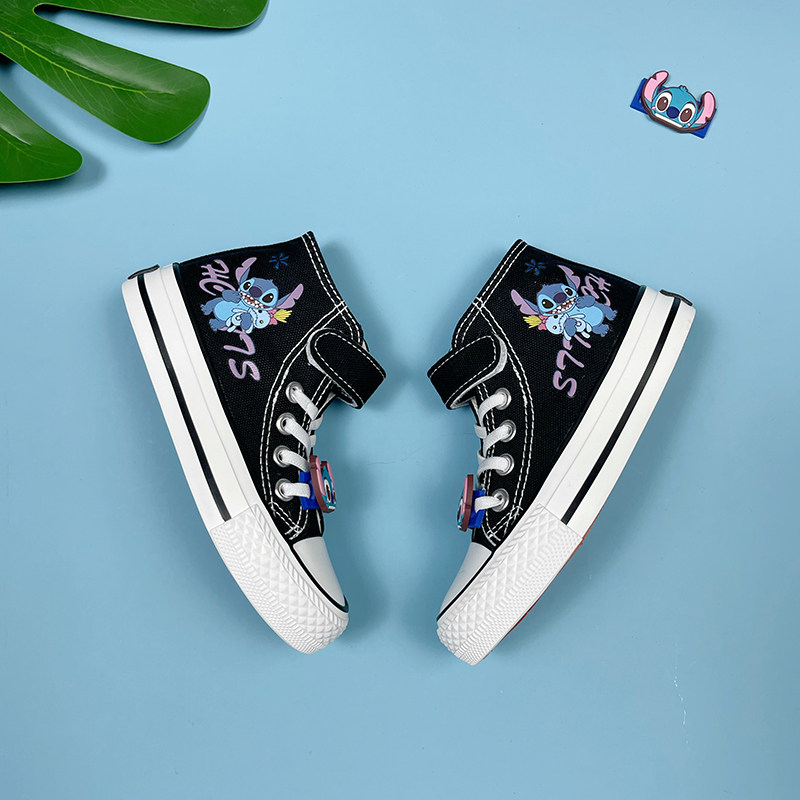Pull back children's high-top canvas shoes 2021 new Shi Dizi joint graffiti cartoon boys cloth shoes girls shoes