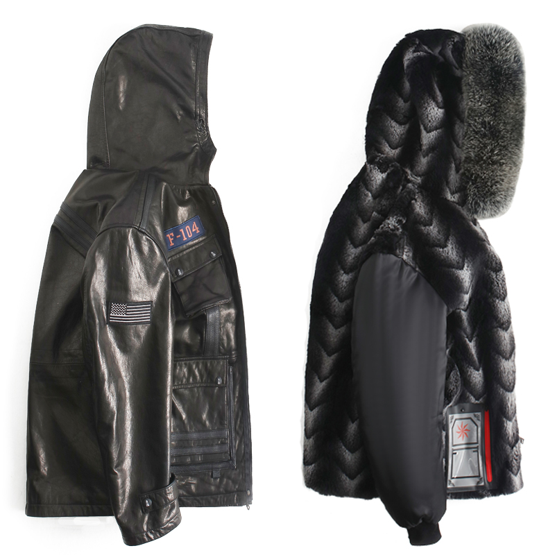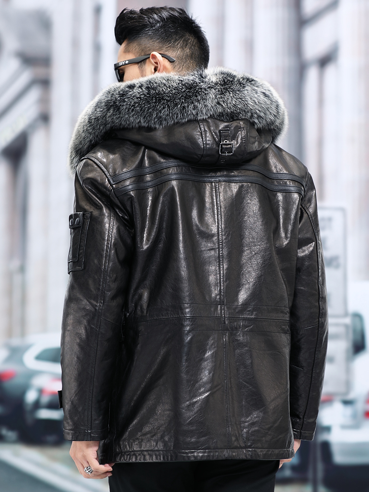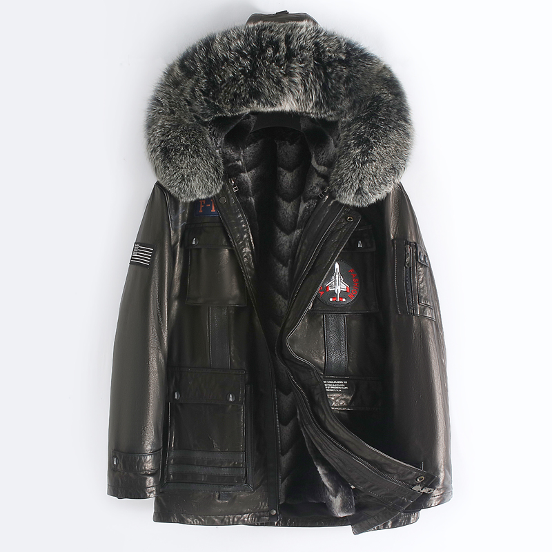 Faction to overcome male rabbit hair liner with cap fur integrated genuine leather fur coat with long version of cow leather Henning leather grass jacket winter