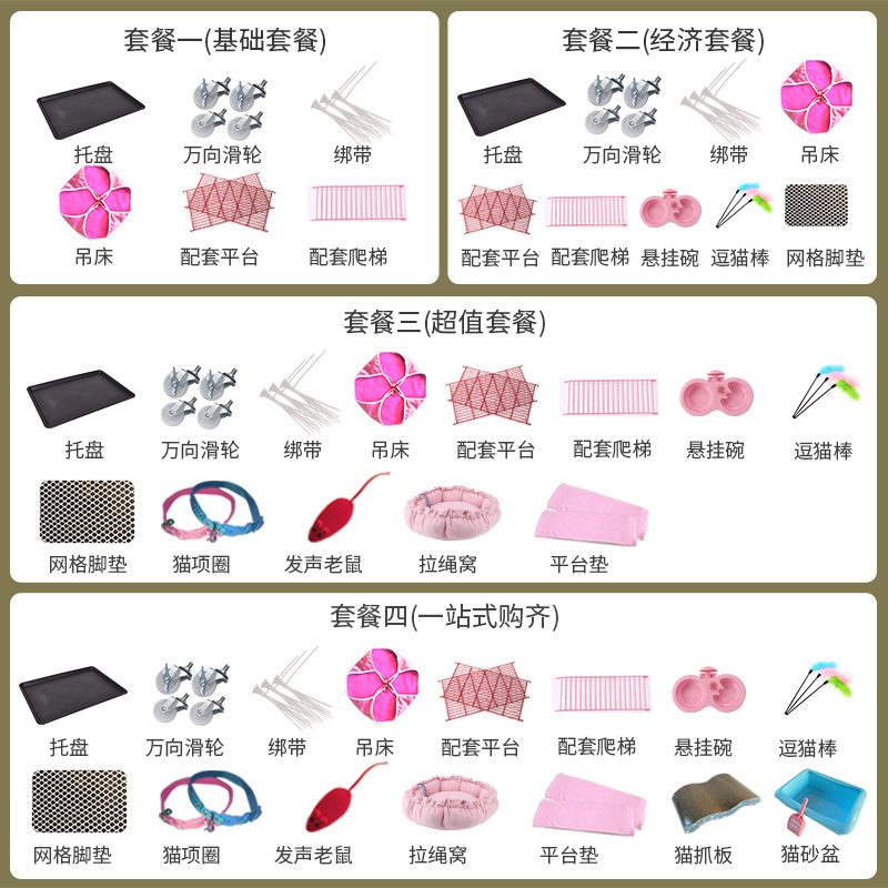 Package 1 Wheels Nursery Platform Climbing bed Climbing Bed Tie 2 (Hanging Bowl Grid Cat Stick Cover 1) Cover 3 (Rat Cat Item Ring Cat Nest Terrace Cushion Cover 2 Package 4 (Cat Catch Board Cat Litter Basin)