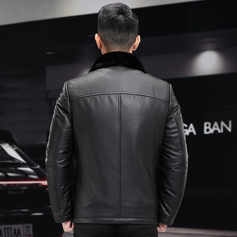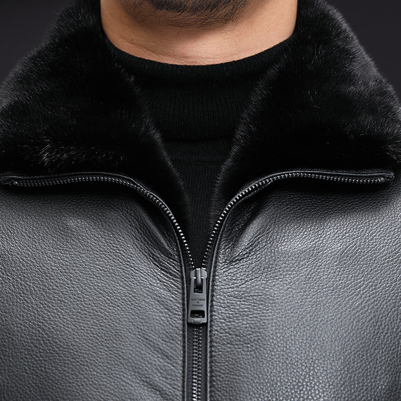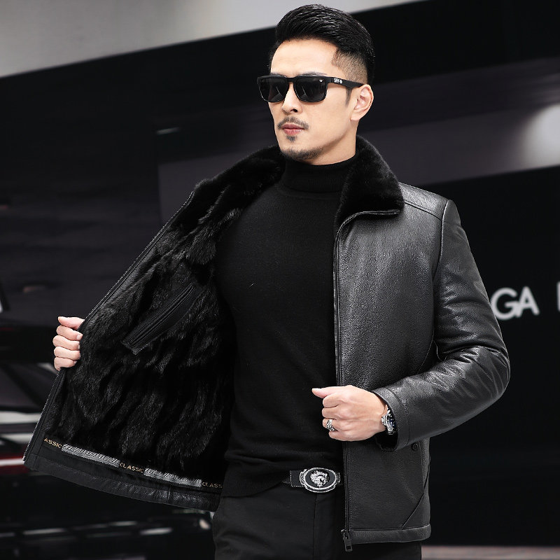 Henning Head Layer Cow Leather Leather Leather Clothing Men's Mink Liner Fur Integrated Leather Jacket Mink Leather Big Coat Short jacket-Taobao